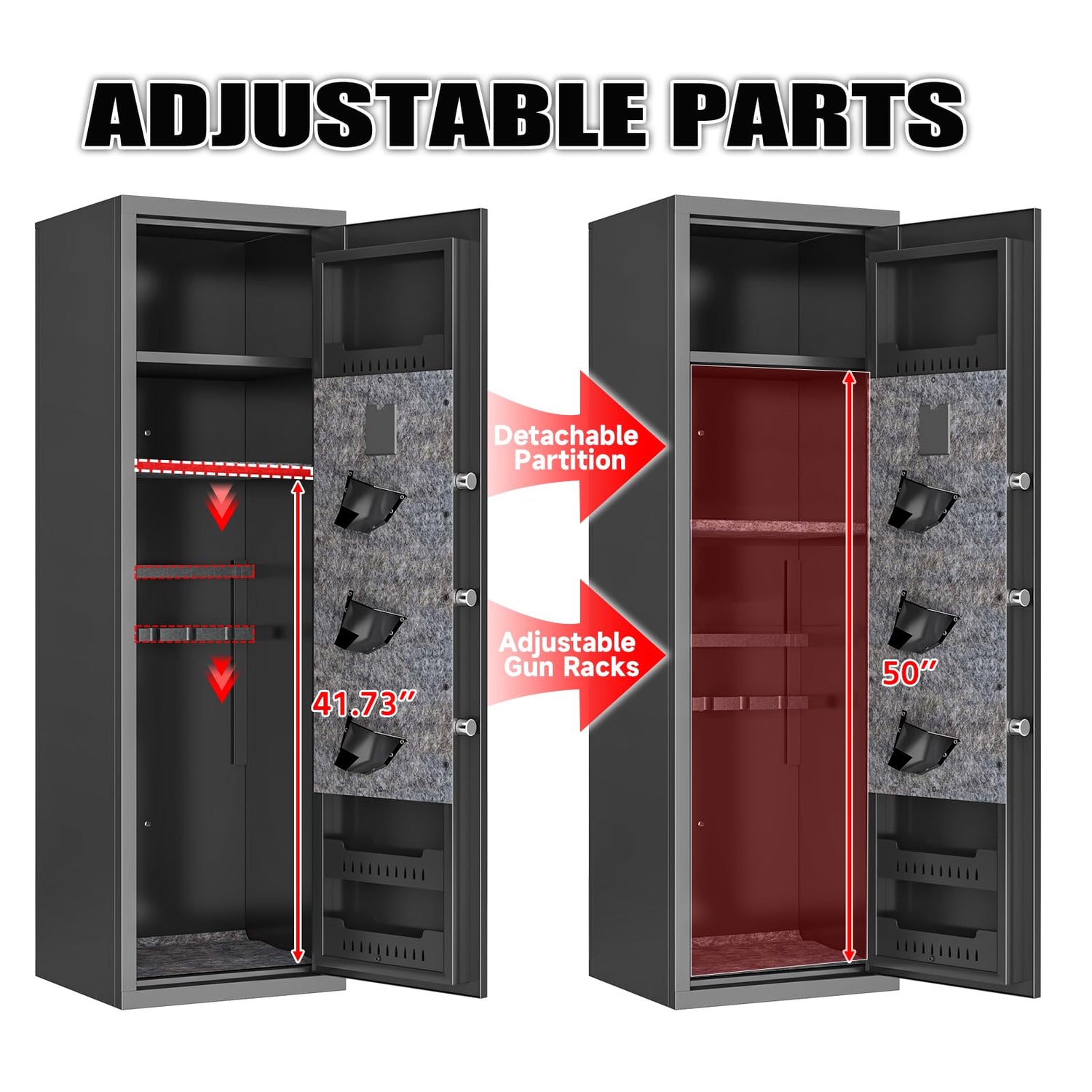 - Larger Capacity – True 10–15 Gun Storage Competitor models often overstate capacity. Our interior layout is tested with real rifles and shotguns, fitting up to 15 long guns plus handguns without cramming. Adjustable racks let you customize for optics, scopes, or accessories.