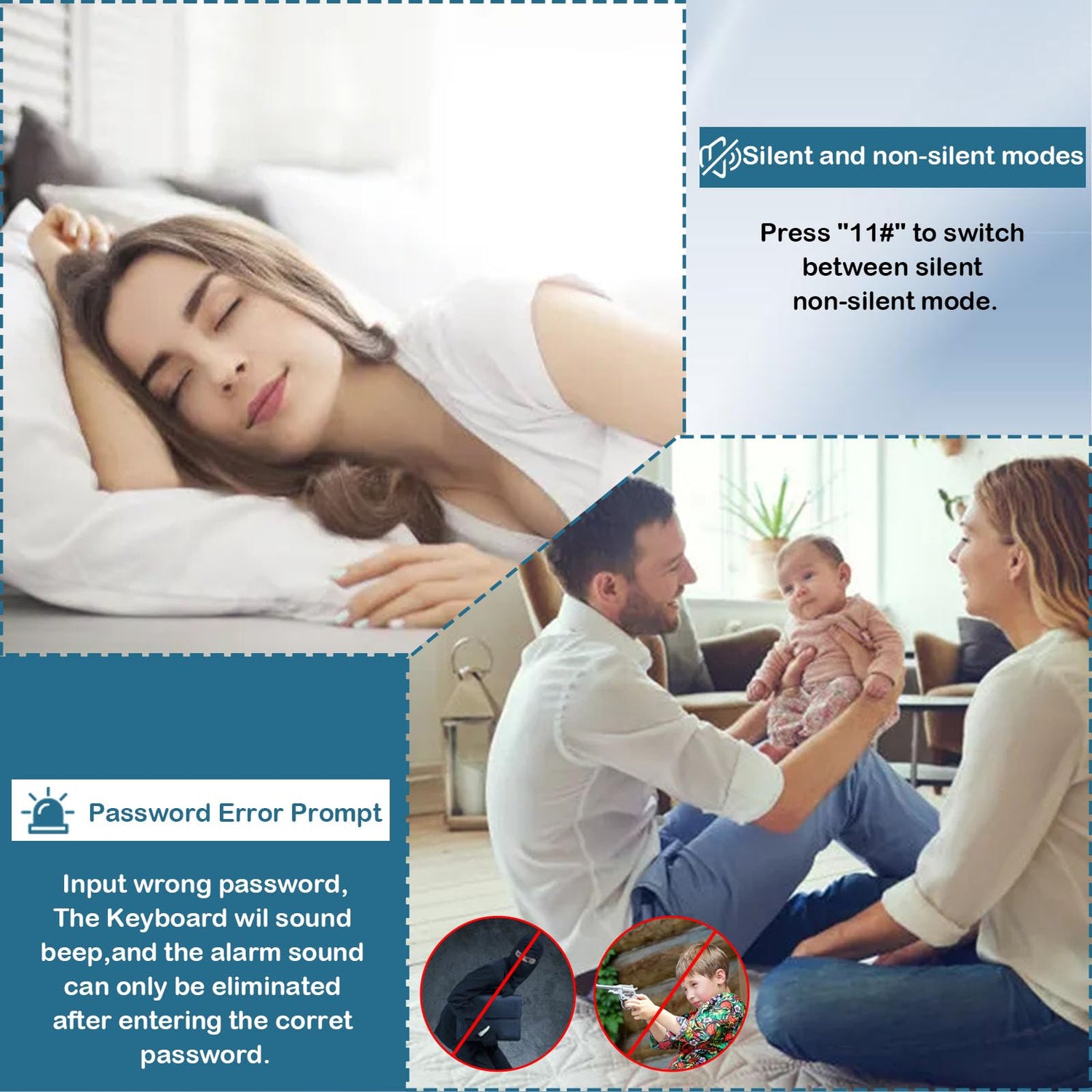 - [LED Light, 2 Removable Gun Holder and Silent Mode]:The LED light ensures access to guns at night. When you use the password to enter the gun safe, the LED light will light up. When you use the key to enter the gun safe, the LED light will not light up.1 removable gun holder can move up and down, back and forth, suitable for most guns.Press "11#" to switch between silent and non-silent modes.
