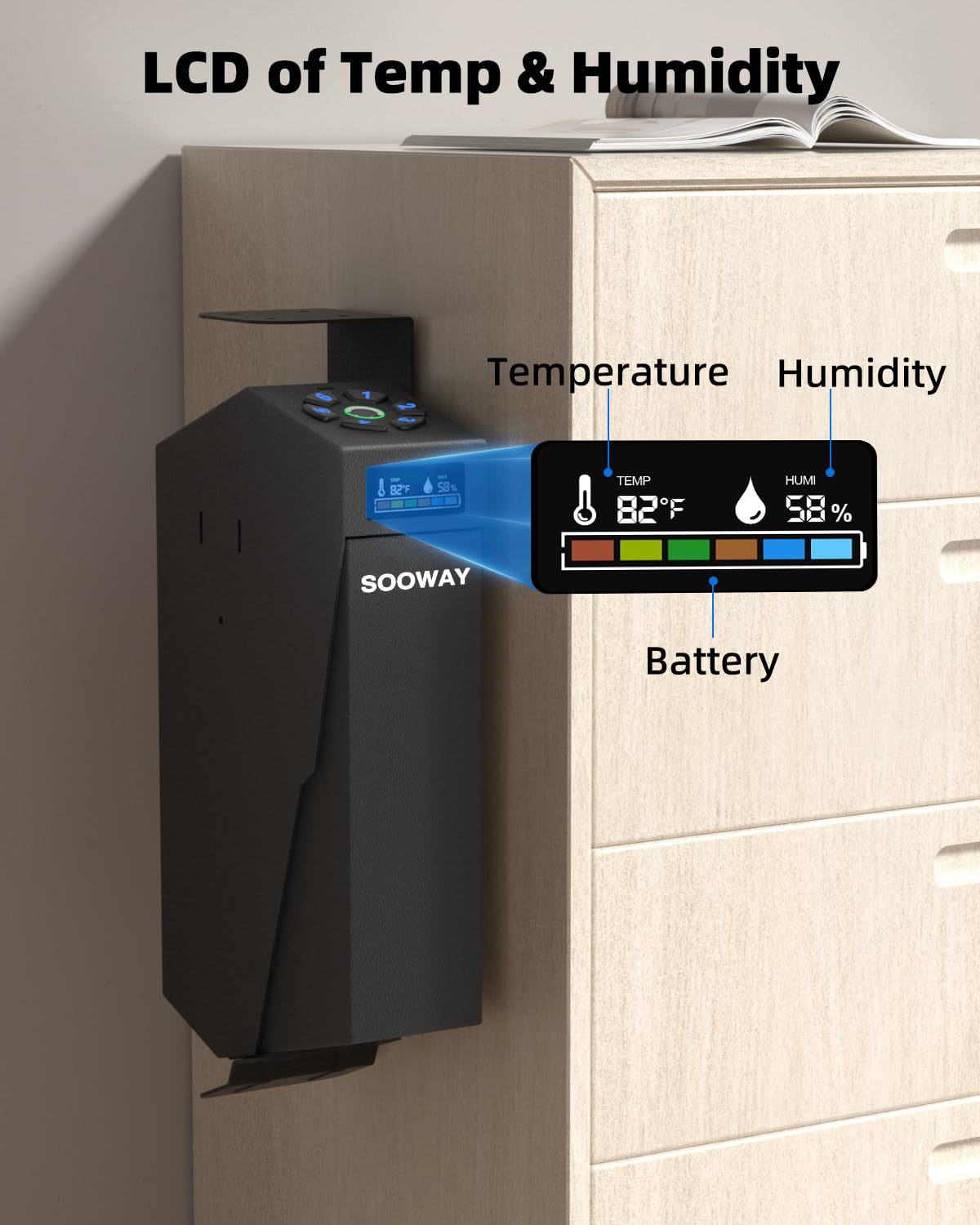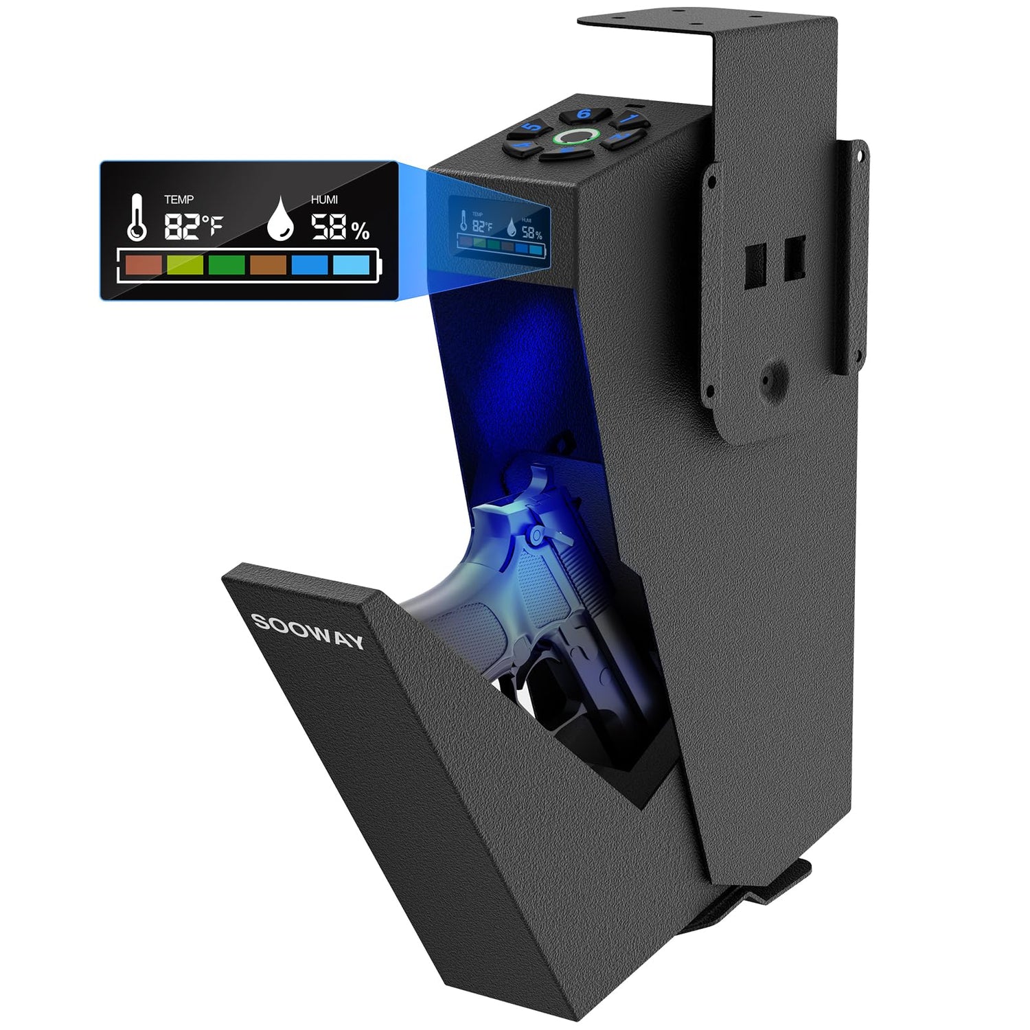 - Compact Size Fit 1 Gun: This biometric gun safe can easily store 1 standard size pistols, The foam-lined interior of the gun safe protects your guns from wear and scratches. Monitor temperature & humidity inside the safe to protect your firearm from moisture. Low-battery indicator ensures you never get locked out unexpectedly.