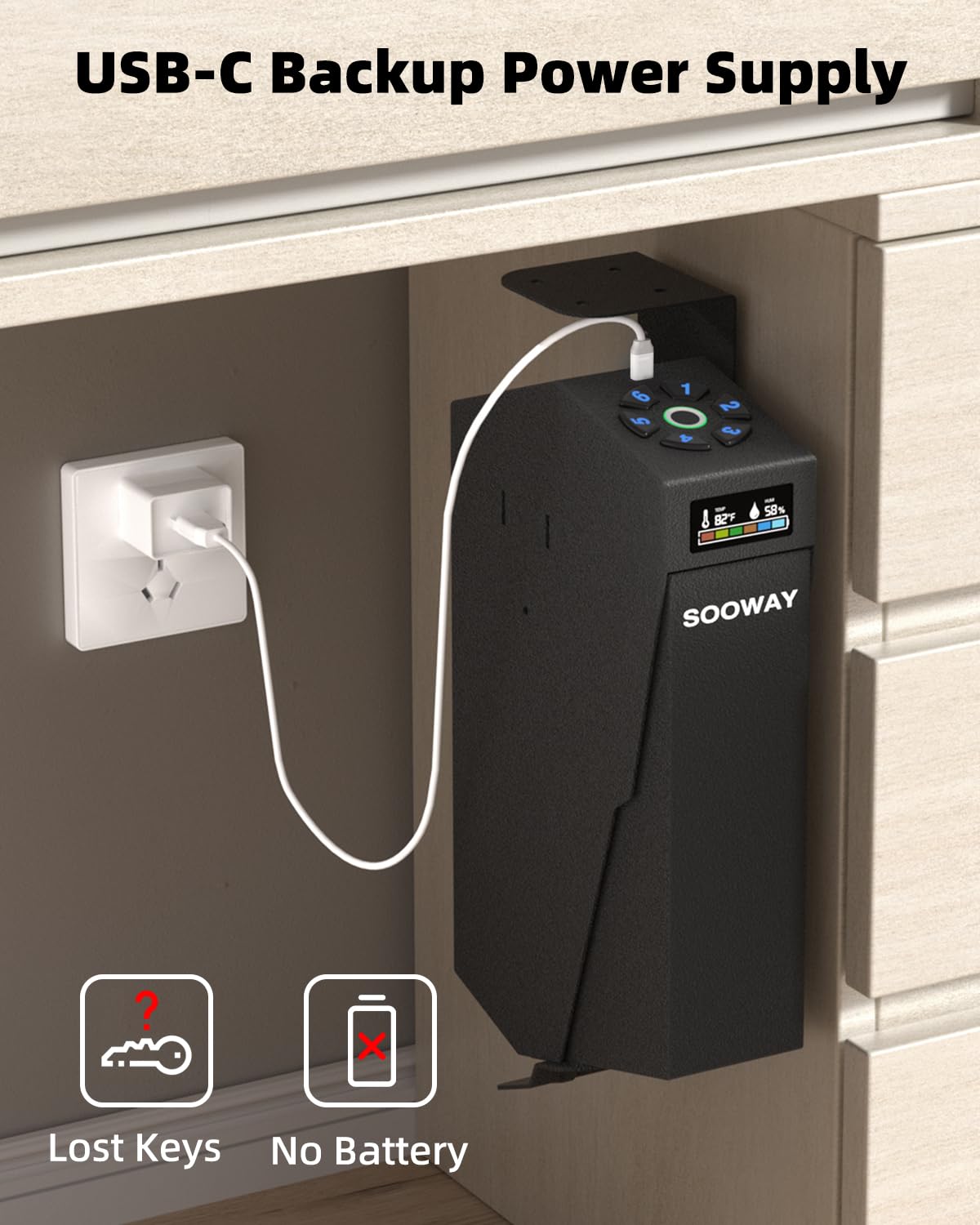 - Emergency USB Power : The biometric gun safe for handgun includes a built-in emergency USB-C power port, allowing temporary access even if batteries die. ensuring you’ll never be locked out during a power outage.It will not charge the batteries, only used as temporary power when the batteries are depleted.