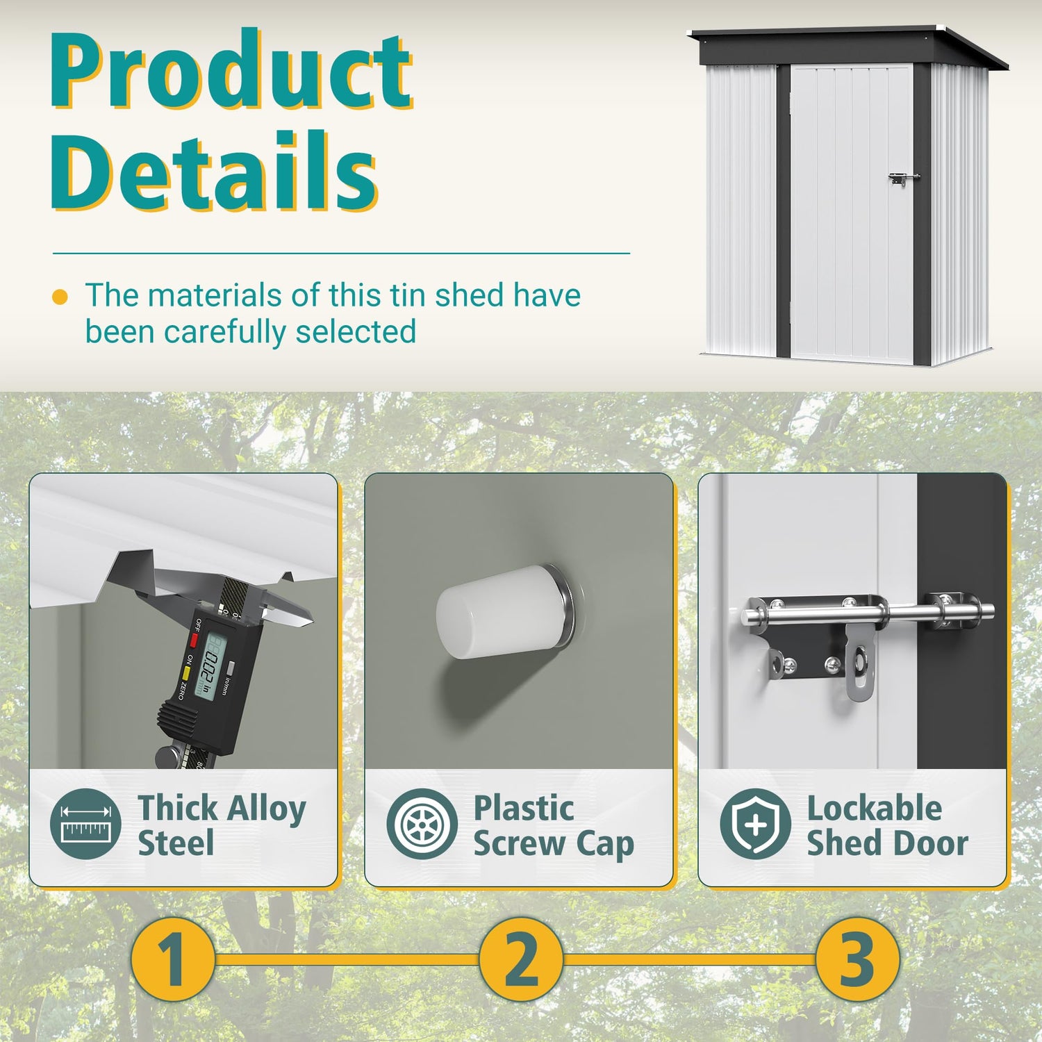GUNJI 5 x 3 FT Shed Outdoor Storage Shed Metal Garden Shed with Lockable Door Outside Waterproof Tool Shed for Backyard, Patio, Lawn (White)