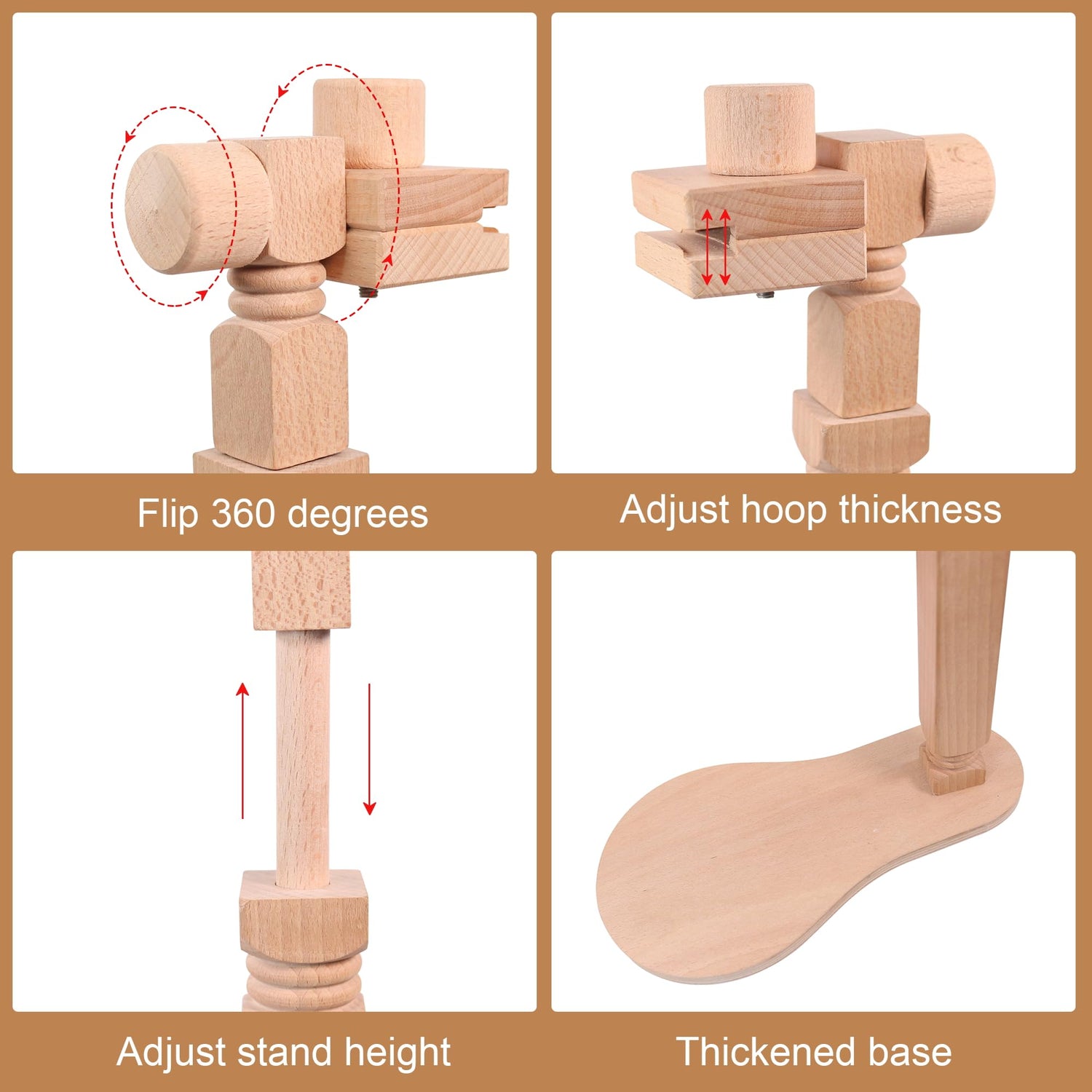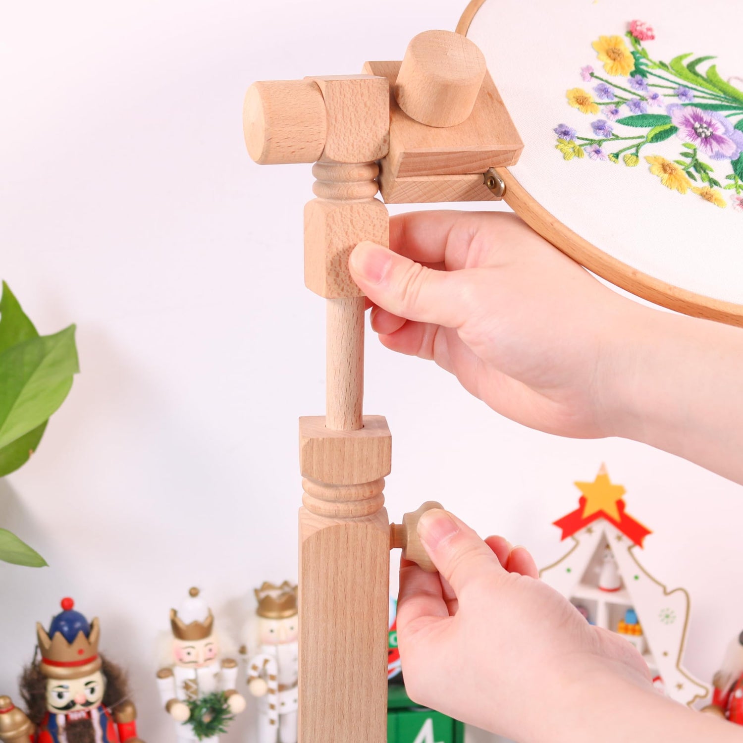 - Quality Embroidery Stand: The hoop stand is made of selective beech wood, lightweight, smooth surface and without splinters, durable and flexible, delicate touch feeling and excellent polishing effect, it can serve you in tons of cross stitch and embroidery projects