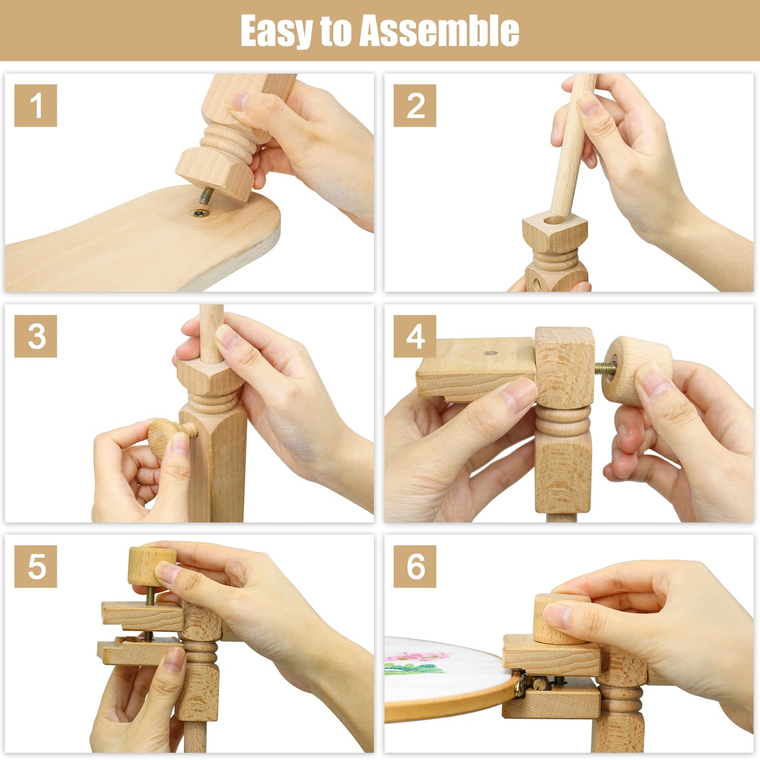 - Easy to Assemble: All the parts are included in the box package. We also provide detailed English instruction with diagrams to help you install the cross stitch stand, you don't have to hold the hoop while doing embroidery, leaving your hands free of cramps and soreness! Happy stitching with the handy frame stand!