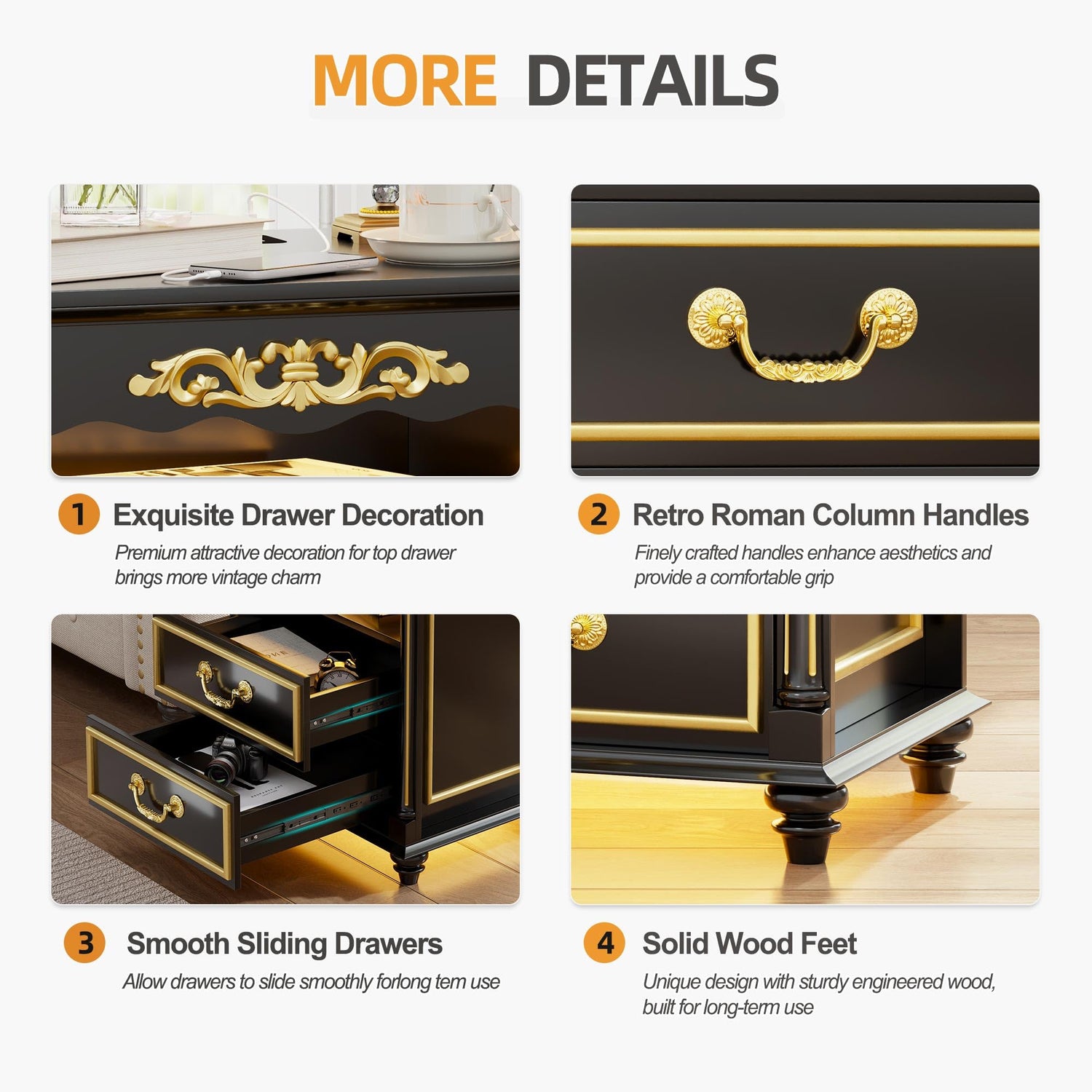 - 【Antiqued Look, Retro Style】 - The nightstand is crafted with exquisite carve pattern, classic drop pull handles and 4 solid wood legs, which is combined vintage aesthetic with modern element, creating a unique and captivating atmosphere in your home