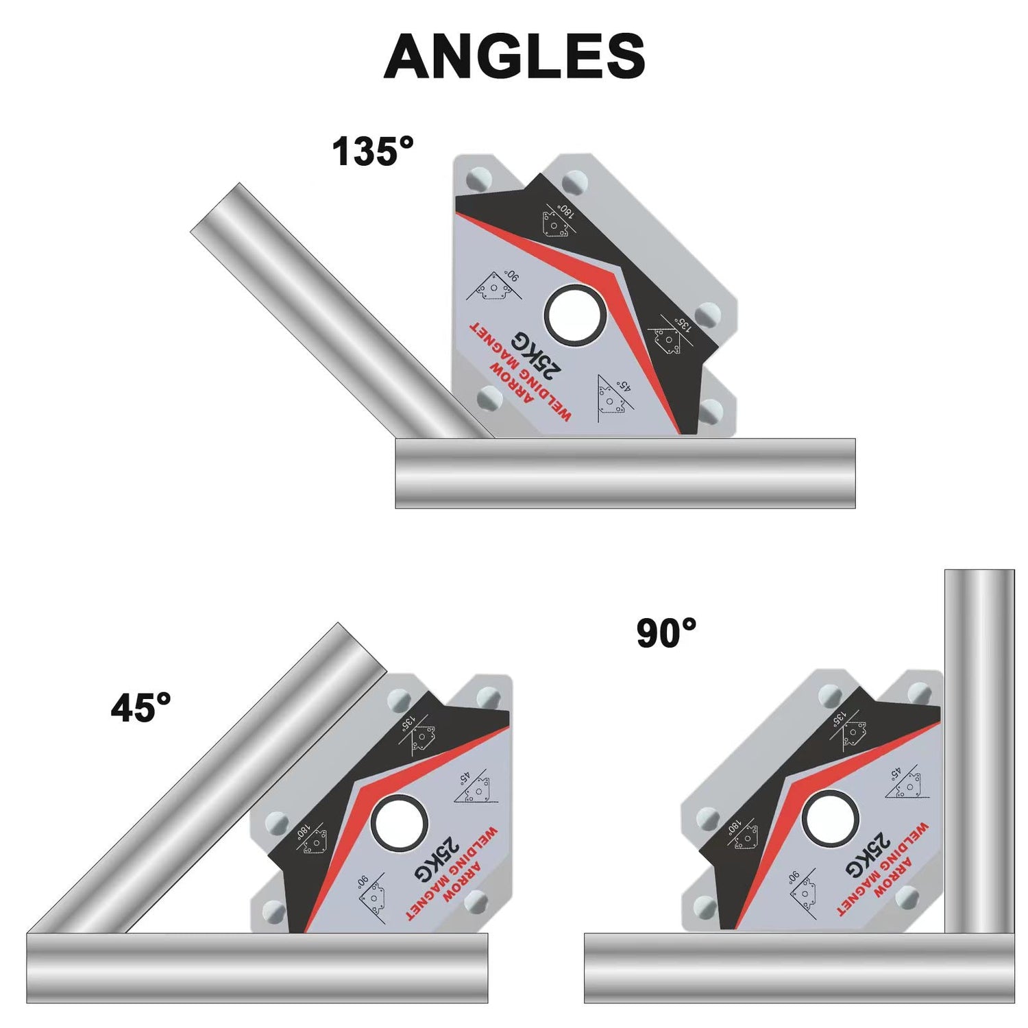 - This welding magnet holder is designed with an arrow shape and hold it at the angle you need to work efficiently it can hold the workpiece at 90, 45 and 135 degrees.