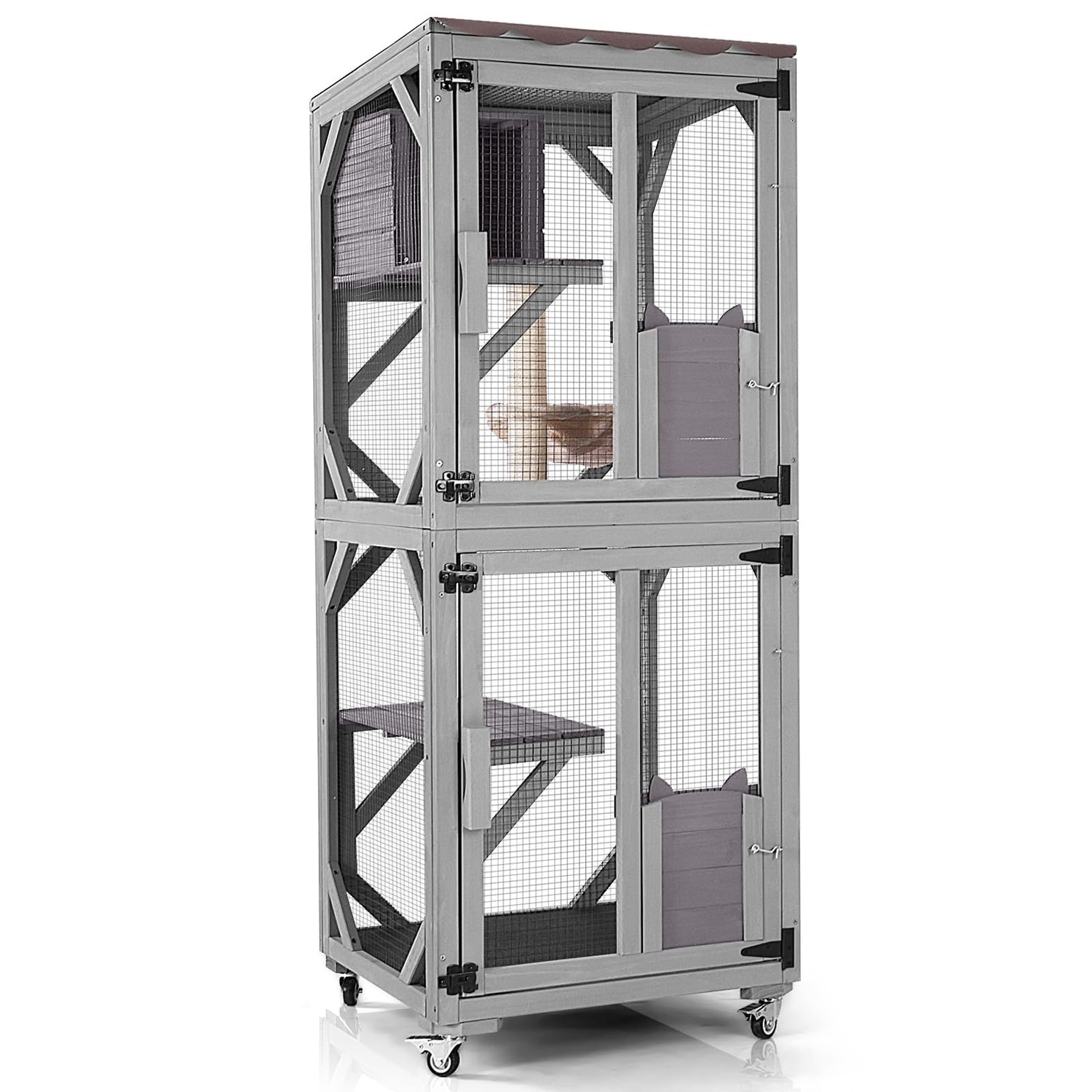- 【Sturdy & Safety】: The upgraded version of Cat Run adds the surrounding reinforcement wooden strip structure to the product to make it more robust and durable. A waterproof roof is perfect for outdoor and indoor use