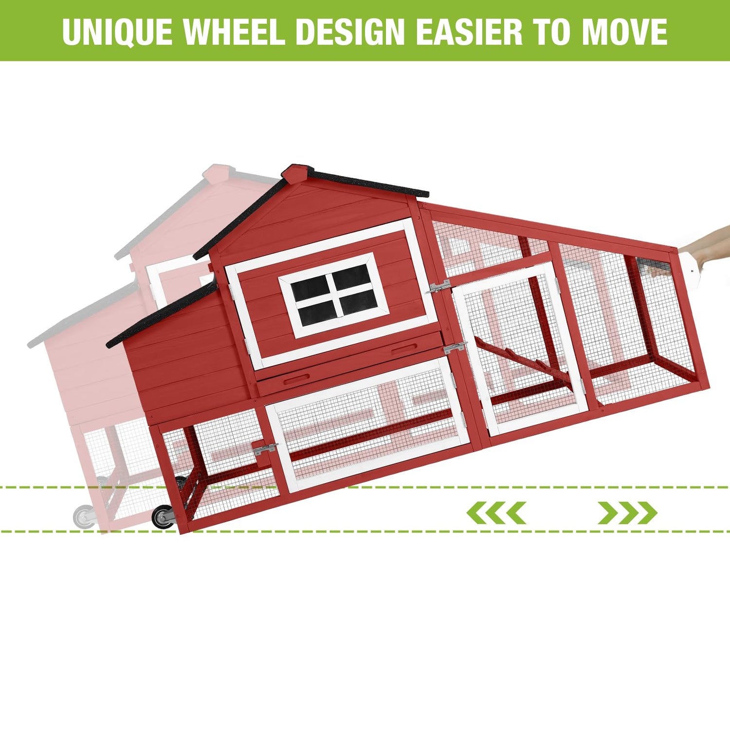 GUTINNEEN Chicken Coop Mobile Hen House Wooden with Run Poultry Cage with Nesting Box,Red
