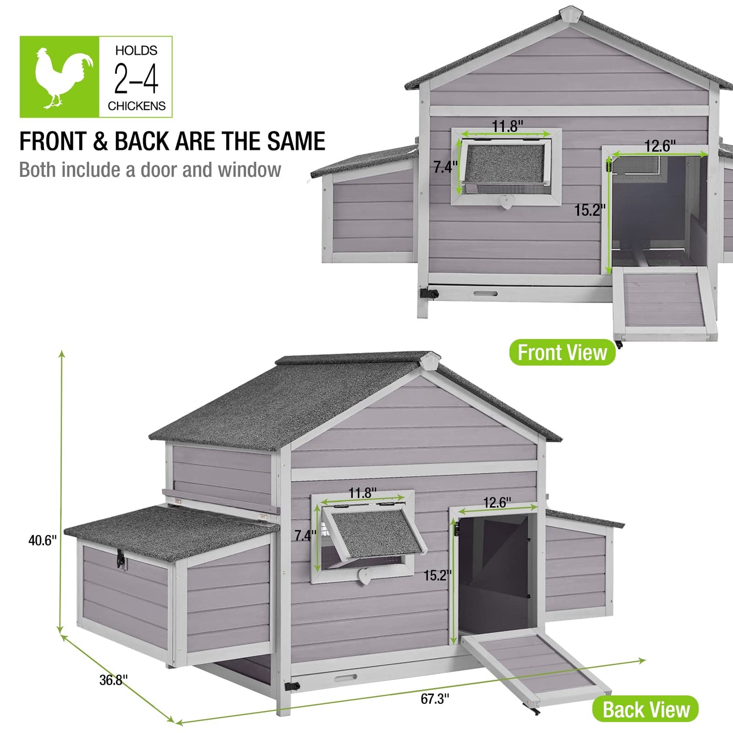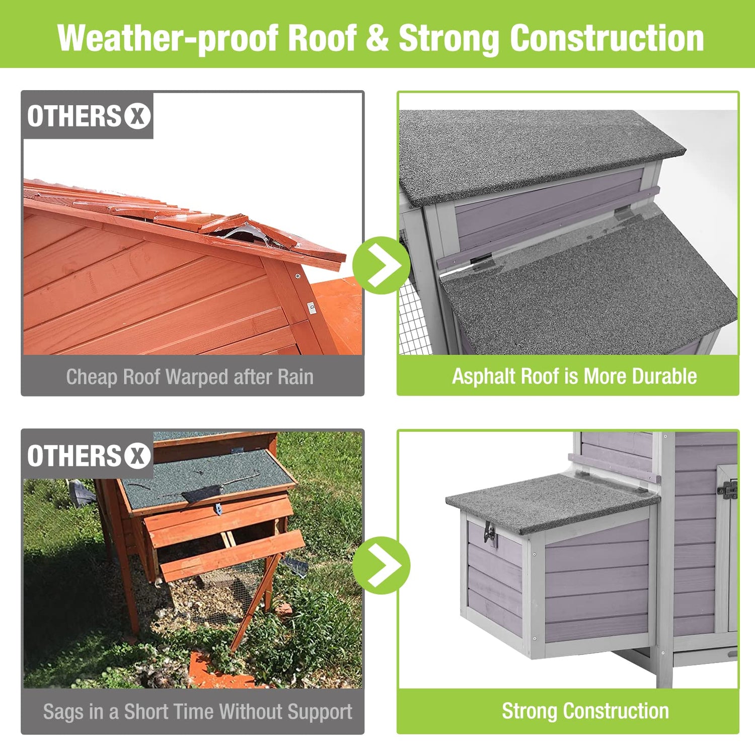 - 🐣 【WEATHER RESISTANT】100% Natural wood, waterproof full coverage asphalt roof provide a dry and comfortable space for your pets at rainy Day. Coated with water-based paint.