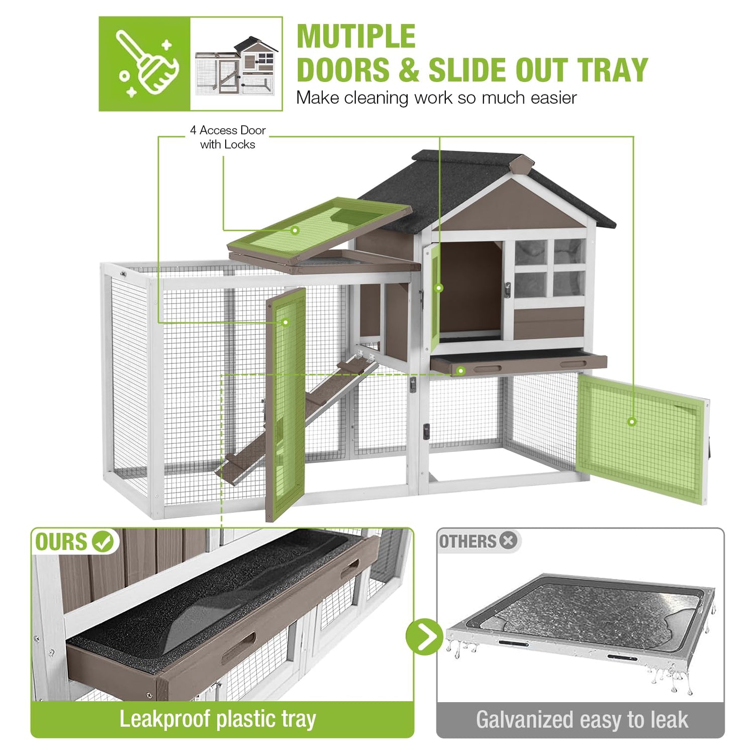 GUTINNEEN Rabbit Hutch Chicken Coop Expandable Indoor Bunny Cage Outdoor Guinea Pig Cage with Run 51.6" L