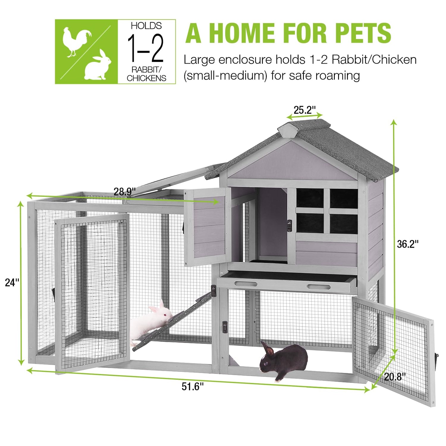 GUTINNEEN Rabbit Hutch Chicken Coop Expandable Indoor Bunny Cage Outdoor Guinea Pig Cage with Run 51.6" L