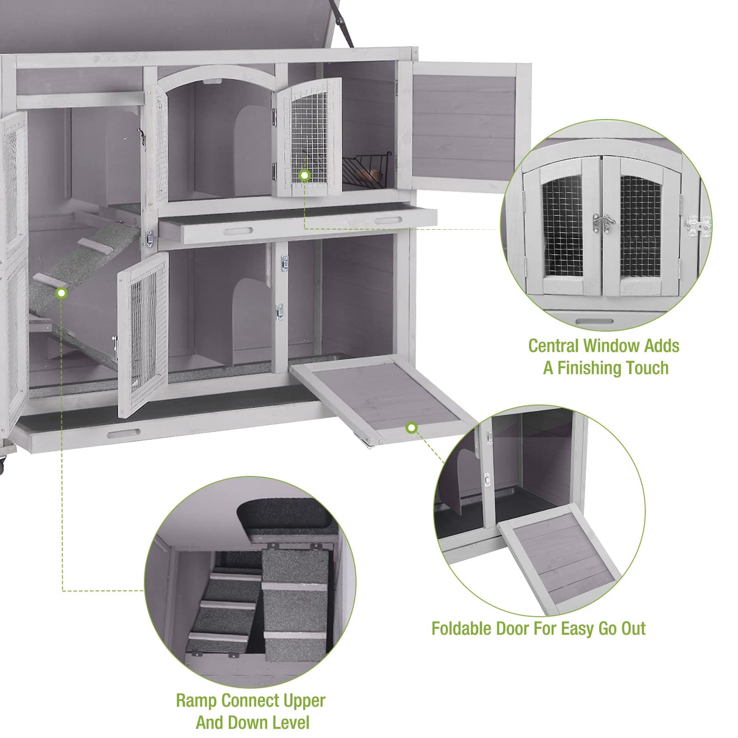 • Easy Movement: 4 stronger metal wheels to move the indoor rabbit hutch easily and quickly. 2 of them are brakes to fix well and keep safe