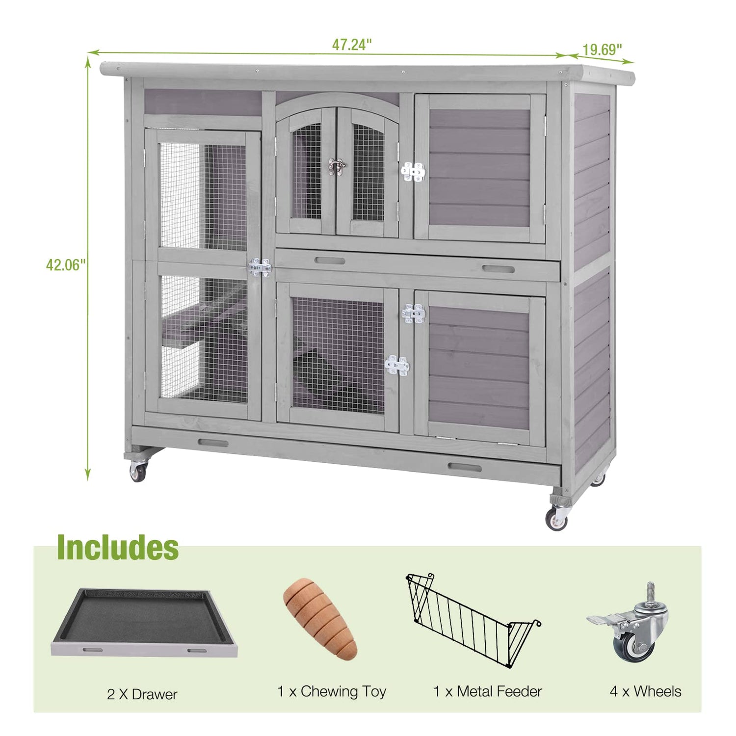 GUTINNEEN Rabbit Hutch Indoor Outdoor Bunny House Guinea Pig Cage on Wheel with Plastic Tray 47inch