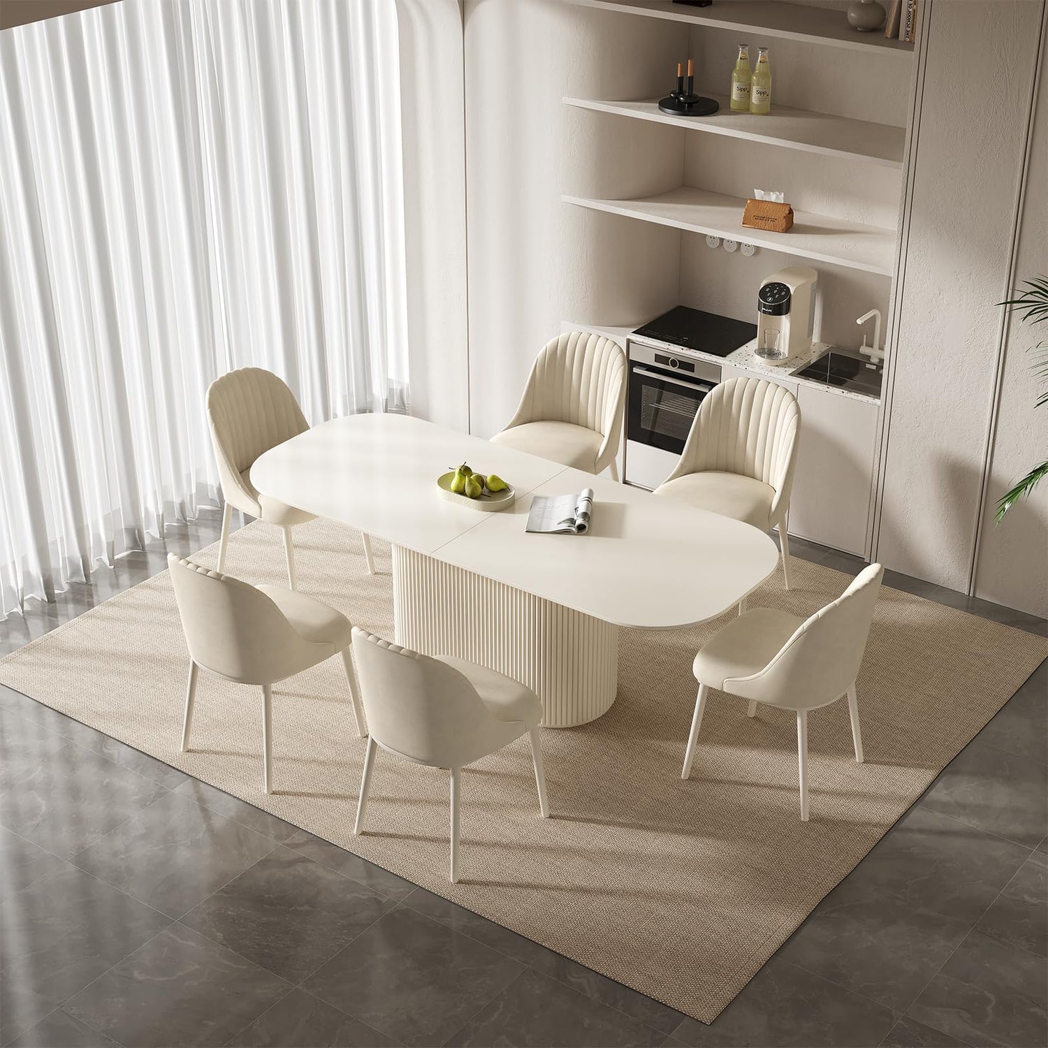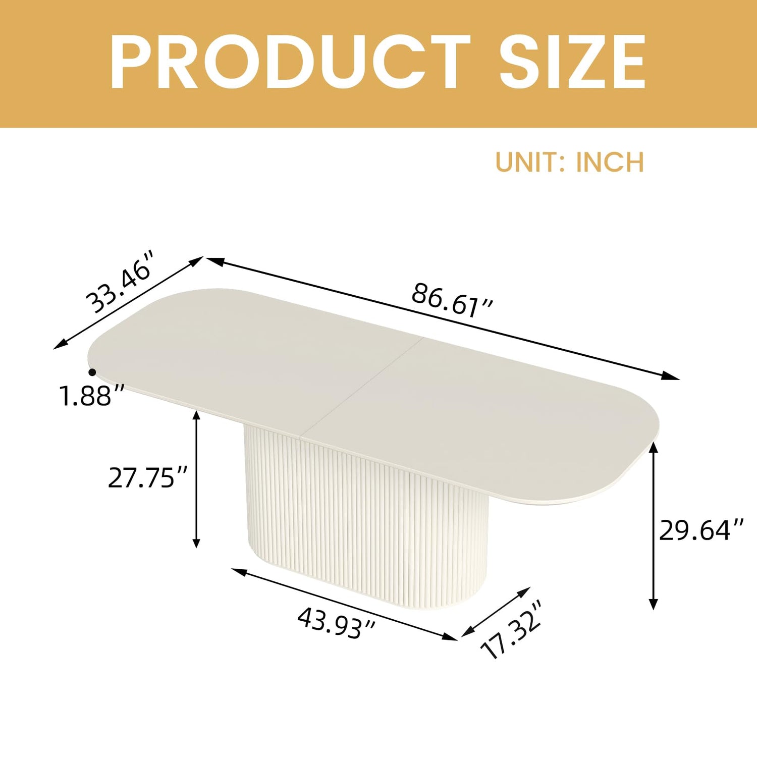 - Elegant Dimensions and Design: With dimensions of 86.61" L x 33.46" W x 29.64" H, the table is proportioned to seat a considerable number of guests while maintaining an elegant presence in any dining room. Its sleek, creamy white finish complements a variety of decor styles, from minimalist to classic, and allows the table to serve as the centerpiece of your dining area