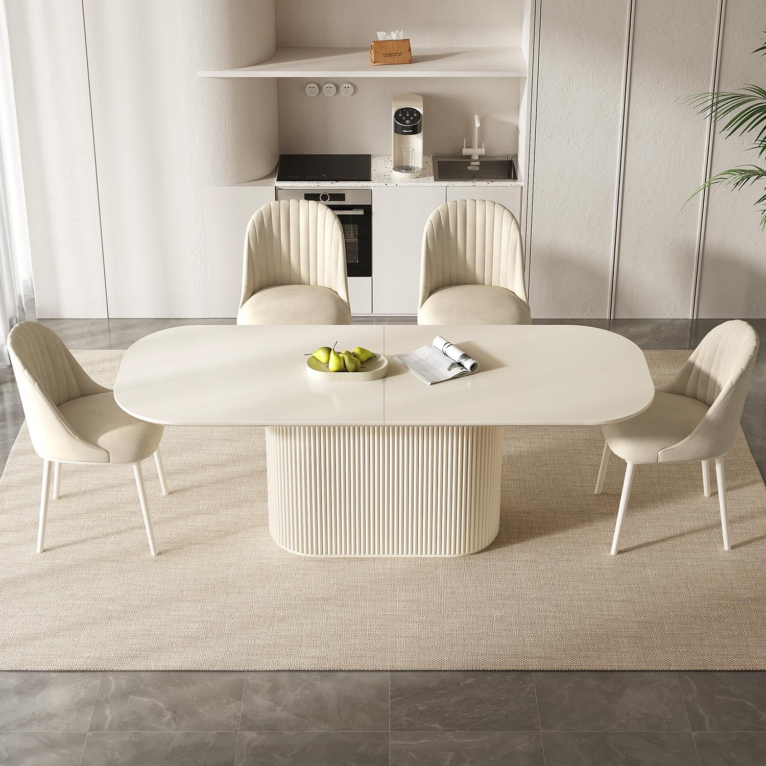 - Rounded Corners for Safety: Thoughtfully designed with rounded corners, this cream white kitchen table prioritizes safety, especially in households with children or pets. This ergonomic touch helps prevent bumps and injuries, making it a family-friendly addition to your dining space