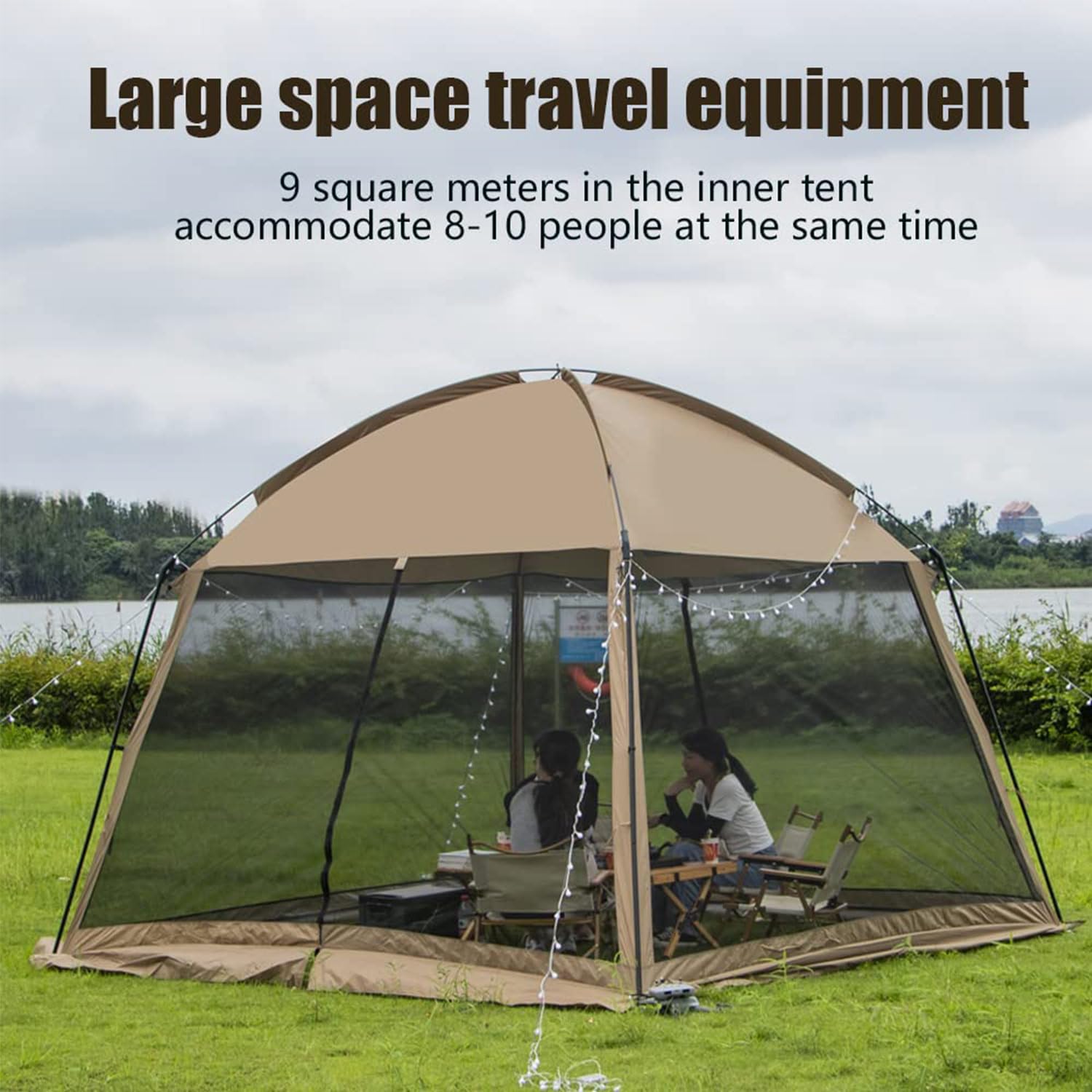 Details: GVDV Screen House 11x11 Ft Mesh Net, Outdoor Camping Canopy Tent Sun Shade Gazebo Shelter Included Carry Bag, Easy Setup & Waterproof, Perfect for Family Picnic, Backyards, BBQ, Patio and Party, Khaki