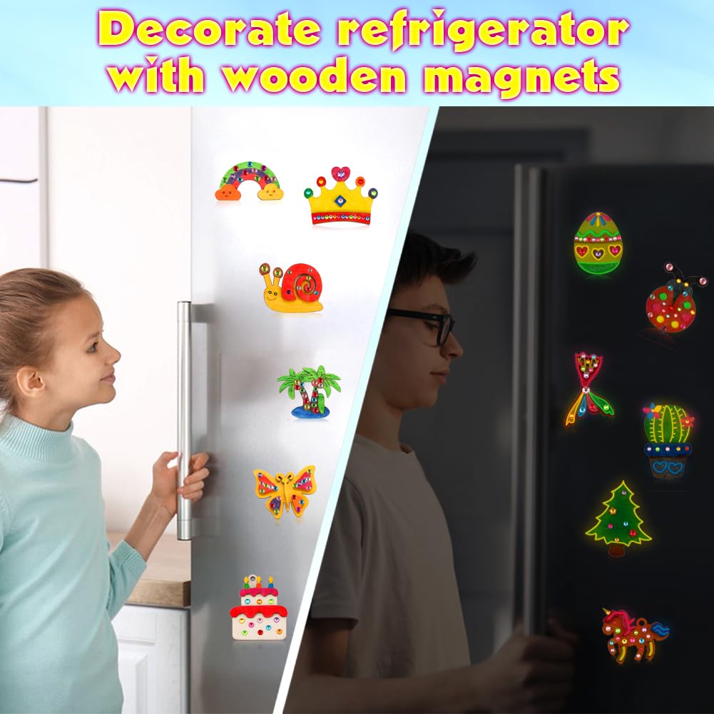 - Art Craft Supplies Kit: Everything you need is in this wooden painting crafts kit, great arts and crafts for kids ages 4-8 8-12, which will inspire kids' creativity to make their own unique wooden magnets to decorate refrigerators, iron windows and more