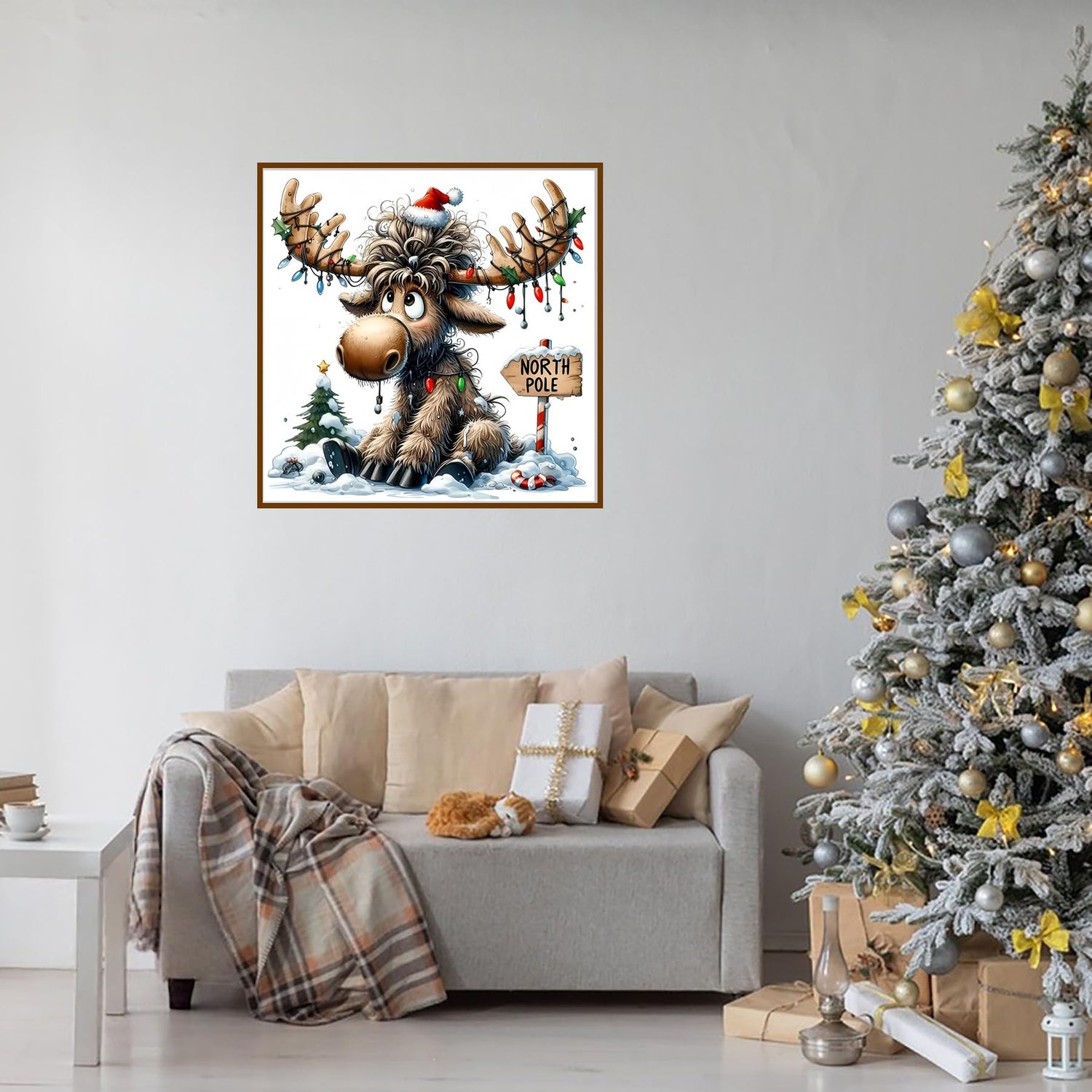 GXGLLPZBY 5D Christmas Diamond Art Kits for Adults Beginners, DIY Cute Deer Diamond Painting Kits, Full Drill Paint by Diamonds Dot Gem Art Painting Kit, for Home Wall Decor 13.8x13.8inch