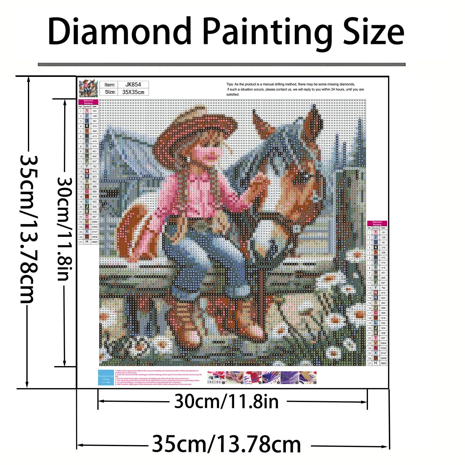 - After Service: Should you experience any issues with missing components from your diamond dot painting or other diamond art accessories, please don't hesitate to contact us. We must resolve all your concerns within 24 hours. Our goal is to ensure you enjoy a seamless and delightful experience while creating your beautiful 5d diamond art artwork