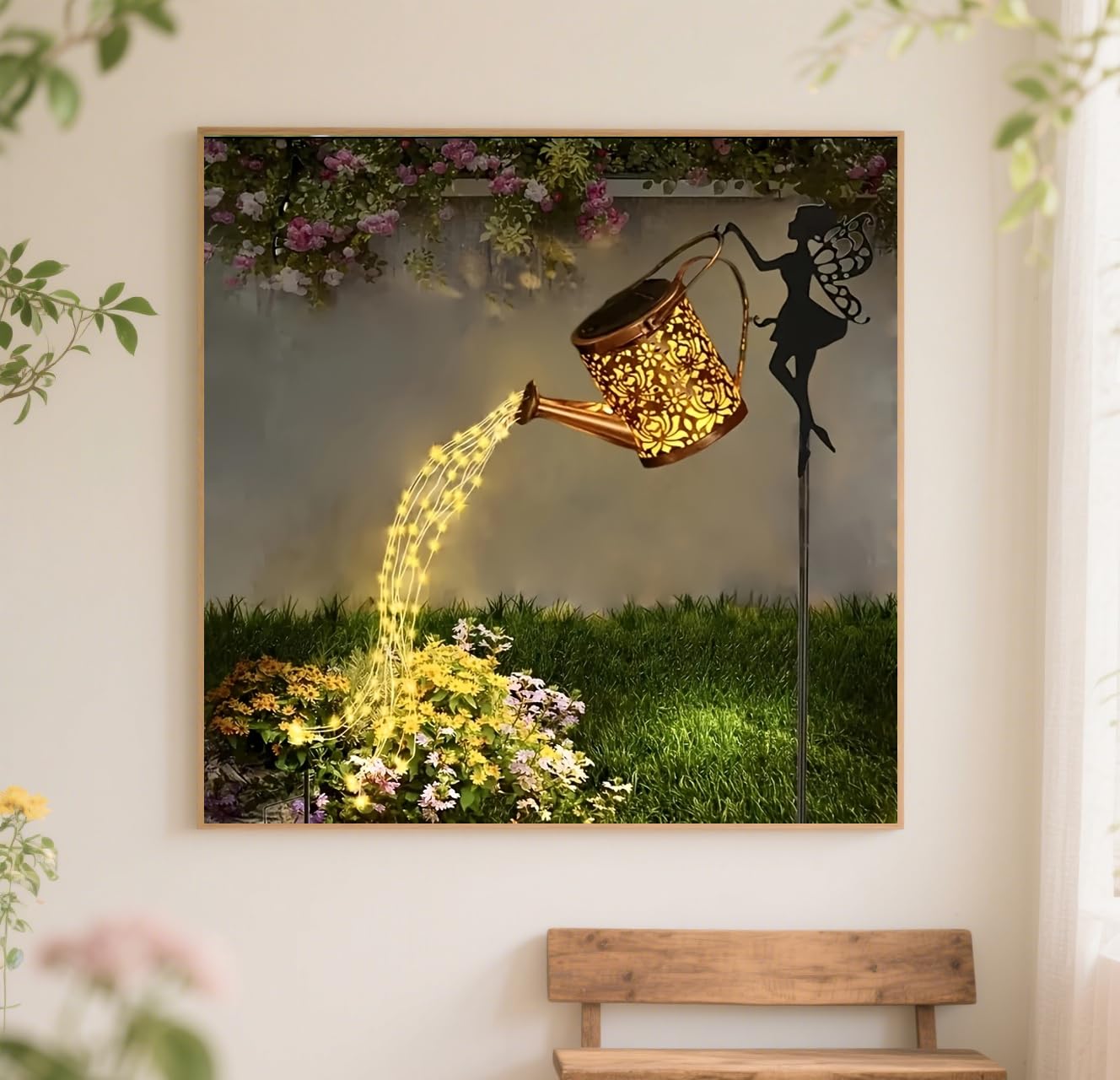 GXGLLPZBY Flower Diamond Painting Kits for Beginners, Garden Fairy Watering Plants Diamond Art Kits for Adult, 5D DIY Full Round Diamond Dot Gem Art Kits,Home Wall Decoration 13.8x13.8 Inches