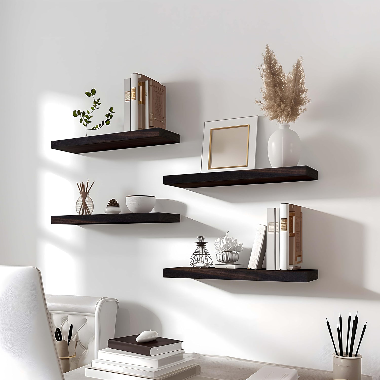 - BEAUTIFUL FLOATING SHELVES - The style and finish of these floating shelves can match almost all themes in your home. Ideal home decor to organize bathroom, office, bedroom, living room, kitchen.