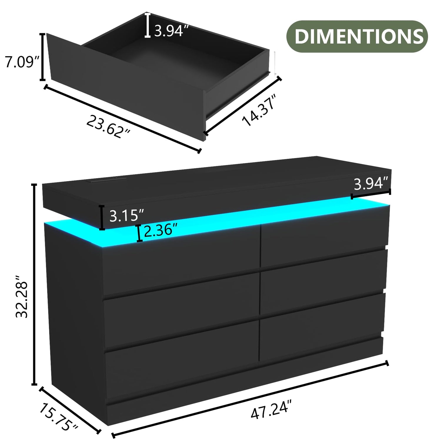 - 【Black Dresser with LED Lights】This drawer organizer is equipped with multi-color RGB LED light strips, the colors, and brightness can be freely adjusted through the button and App, making your furniture more diverse and stylish. Combined with the dresser's unique design, creates a visually stunning floating effect at the top. This feature adds a touch of sophistication and creates a captivating ambiance in your space.