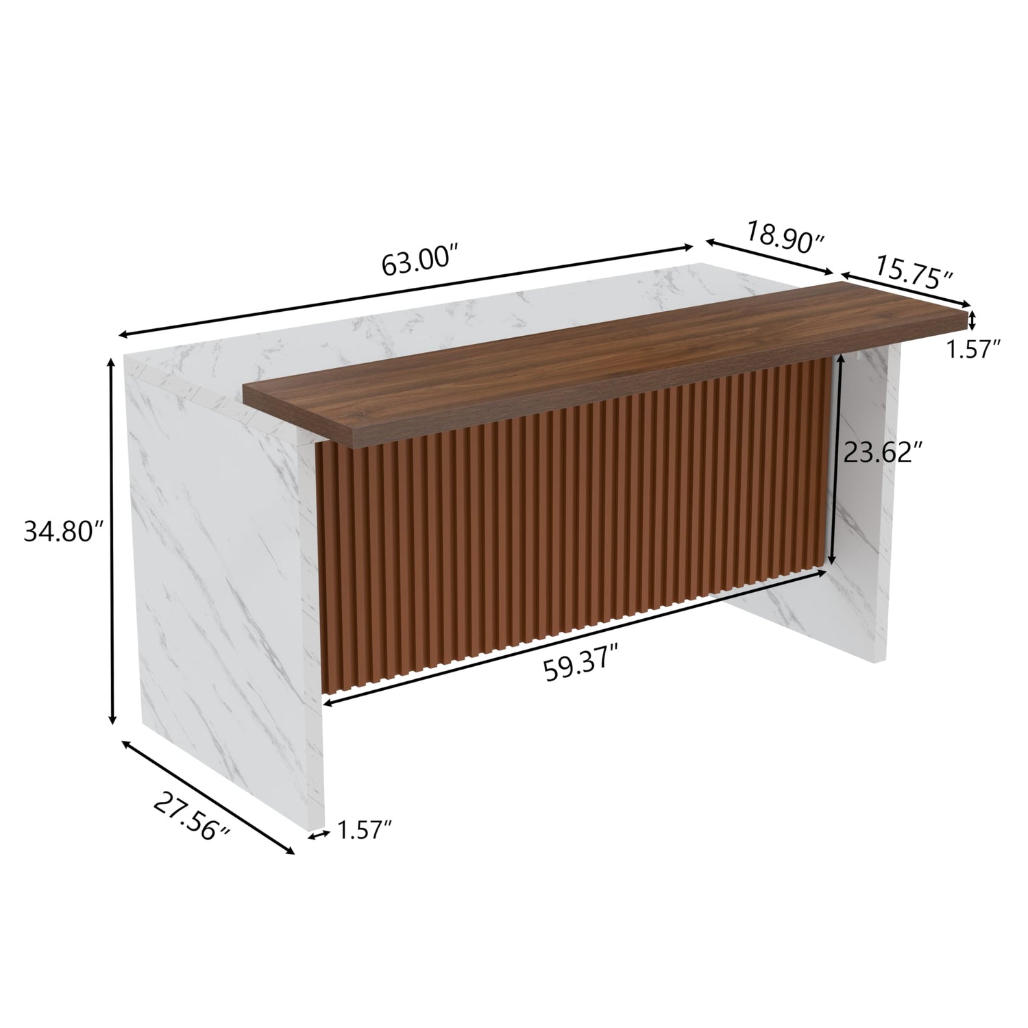 Gyfimoie 63" Large Imitation Marble Bar Table,Island Table with LED Lights,Mordern Marble Stripes Dining Table with Grille Design for Home Kitchen, Living Room, Balcony, Basement(White)