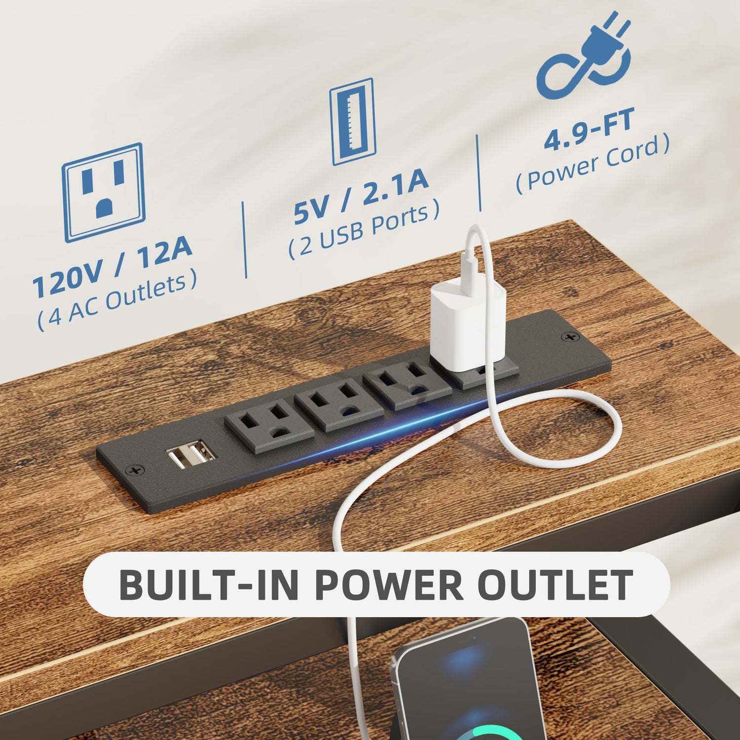 - Simplify Your Setup with Built-in Power: Upgrade your home entertainment setup with this sleek TV stand featuring a built-in mount and convenient integrated outlets. It provides effortless access to power for all your devices, eliminating the need for extra power strips and keeping your space tidy and organized.