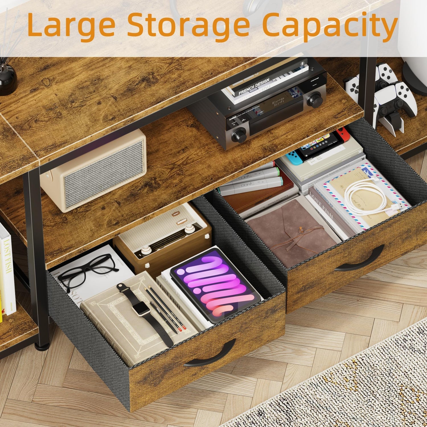GYIIYUO LED TV Stand with Mount and Power Outlet & Fabric Drawers for 32-85 Inches TV - Entertainment Center and Corner Tv Stand for Living Room, Bedroom- 47" Rustic Brown (Max VESA 400mm × 600mm