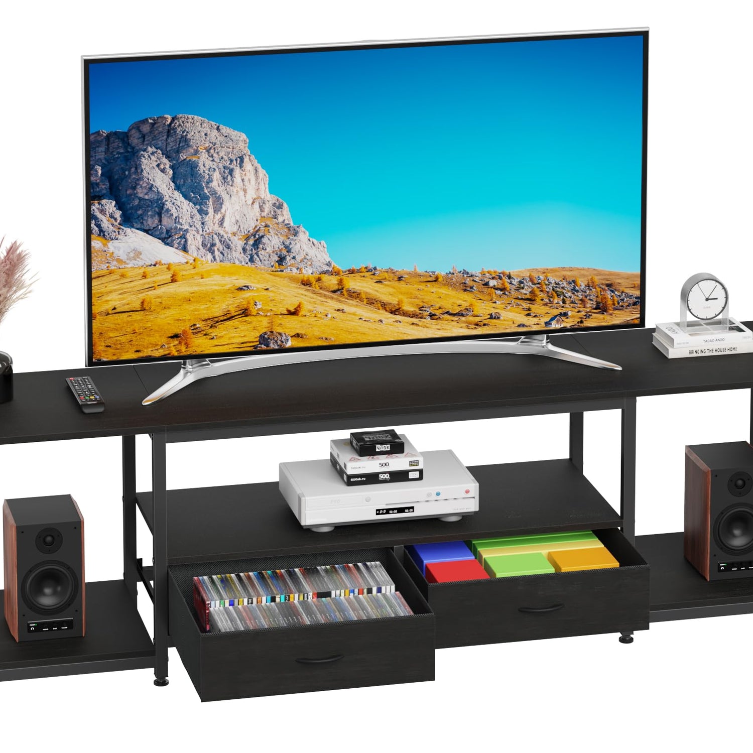GYIIYUO TV Stand with Fabric Drawers for 75 80 Inches TV - Entertainment Center and Industrial TV Console Table with Open Storage Shelves for Living Room, Bedroom- 71.5" Black