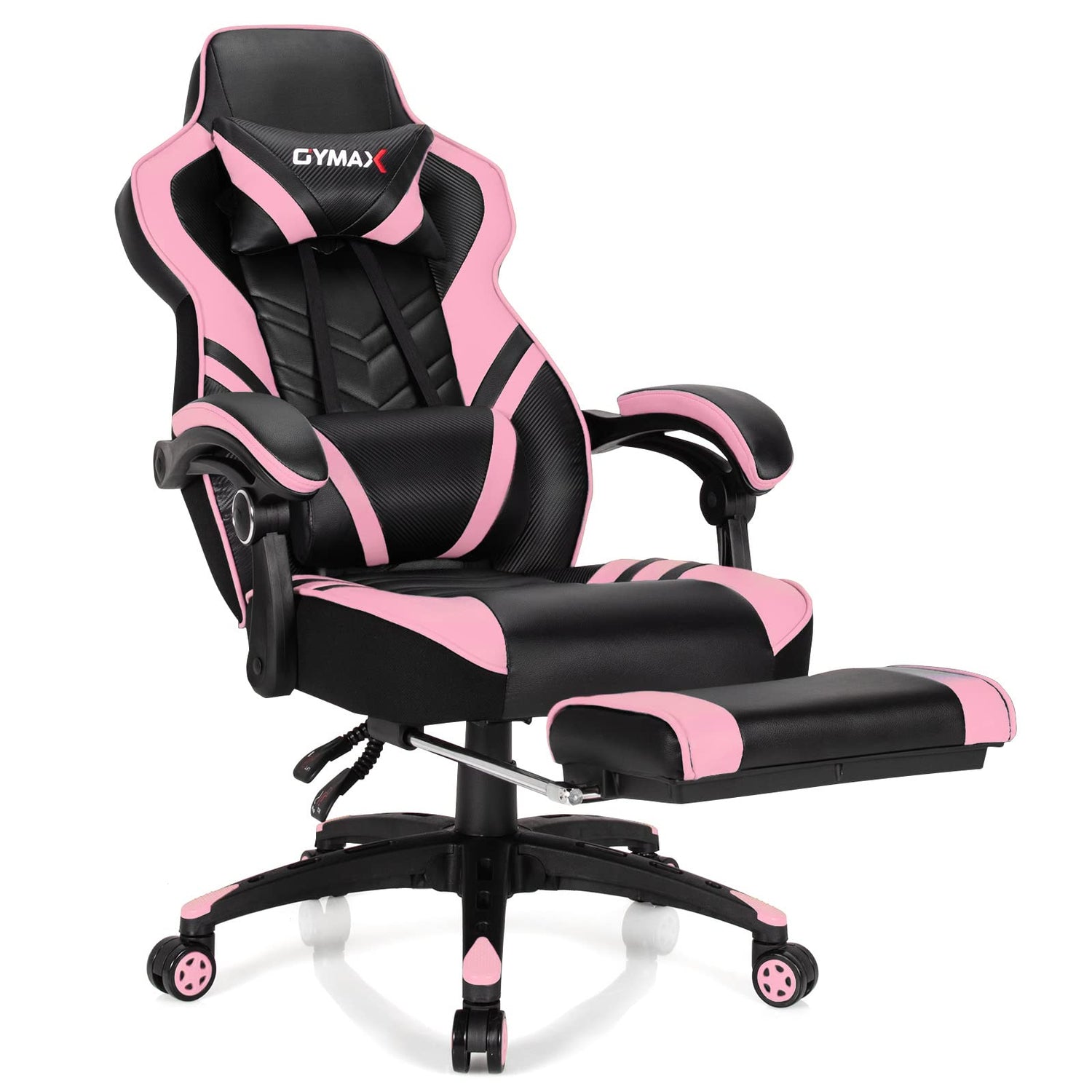 GYMAX Gaming Chair, Ergonomic Computer Chair with Footrest, Linkage Armrests & Lumbar Cushion, Big Wide High Back Video Gaming Chair, Reclining Office Rolling Chair for Adult/Teens (Pink)