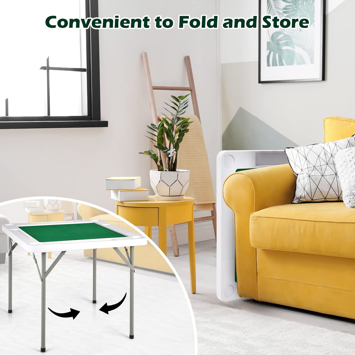 - đăFoldable Designă Can be set up or folded in minutes,this folding table gives you more convenience.Security lock fix legs when folded,adding extra safety. Moreover, lightweight and portable, this mahjong table allows you to take anywhere effortlessly.