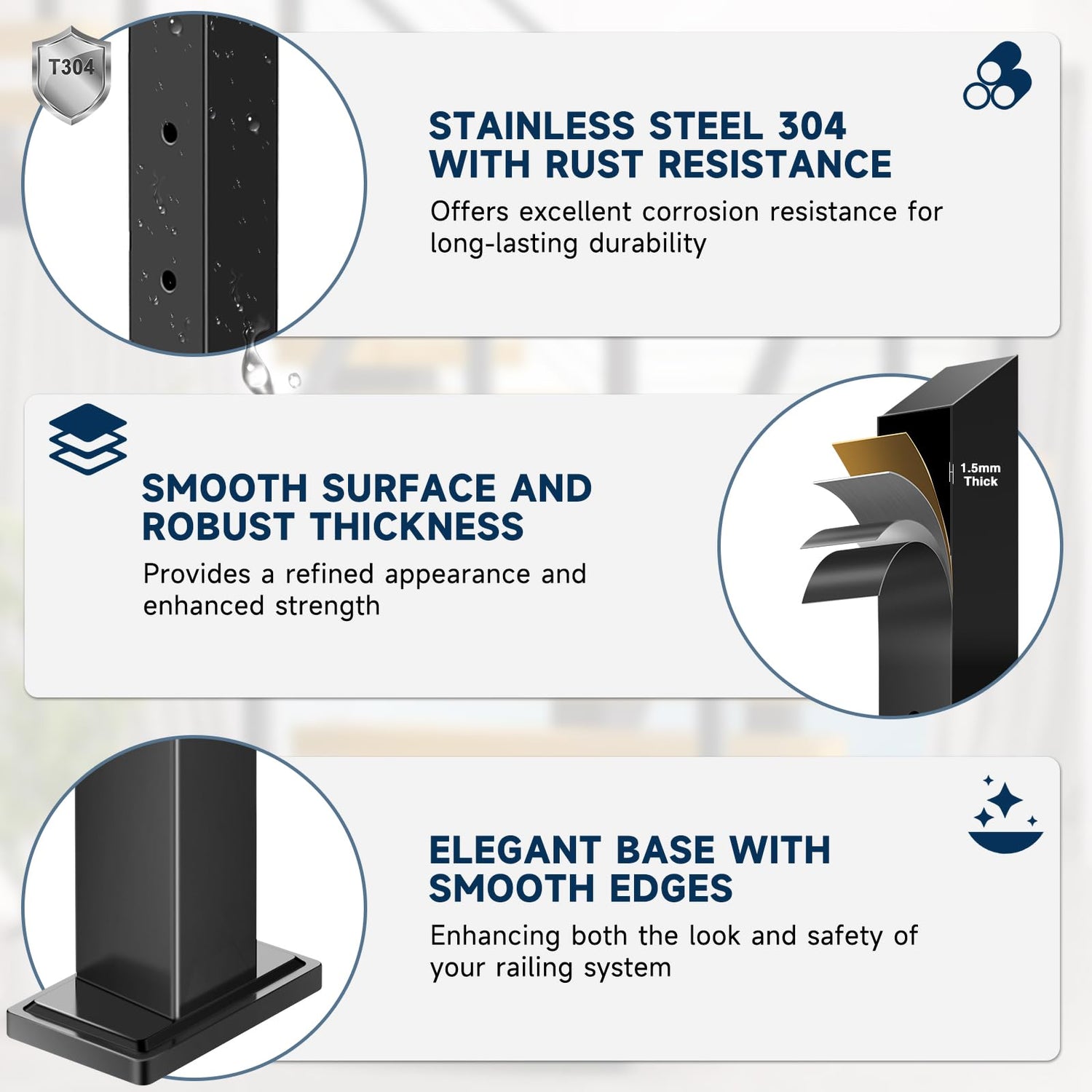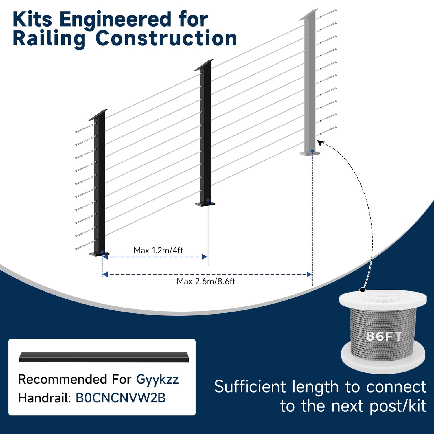 - Premium Material: The cable railing posts consist of black powder-coated T304, while the widely used 1/8" silver railing cables and terminals are constructed from T316 marine-grade steel. (The terminals are a truly tight terminal kit that emphasizes safety). The cable washers are crafted from high-quality rubber and boast exceptional waterproofing capabilities.