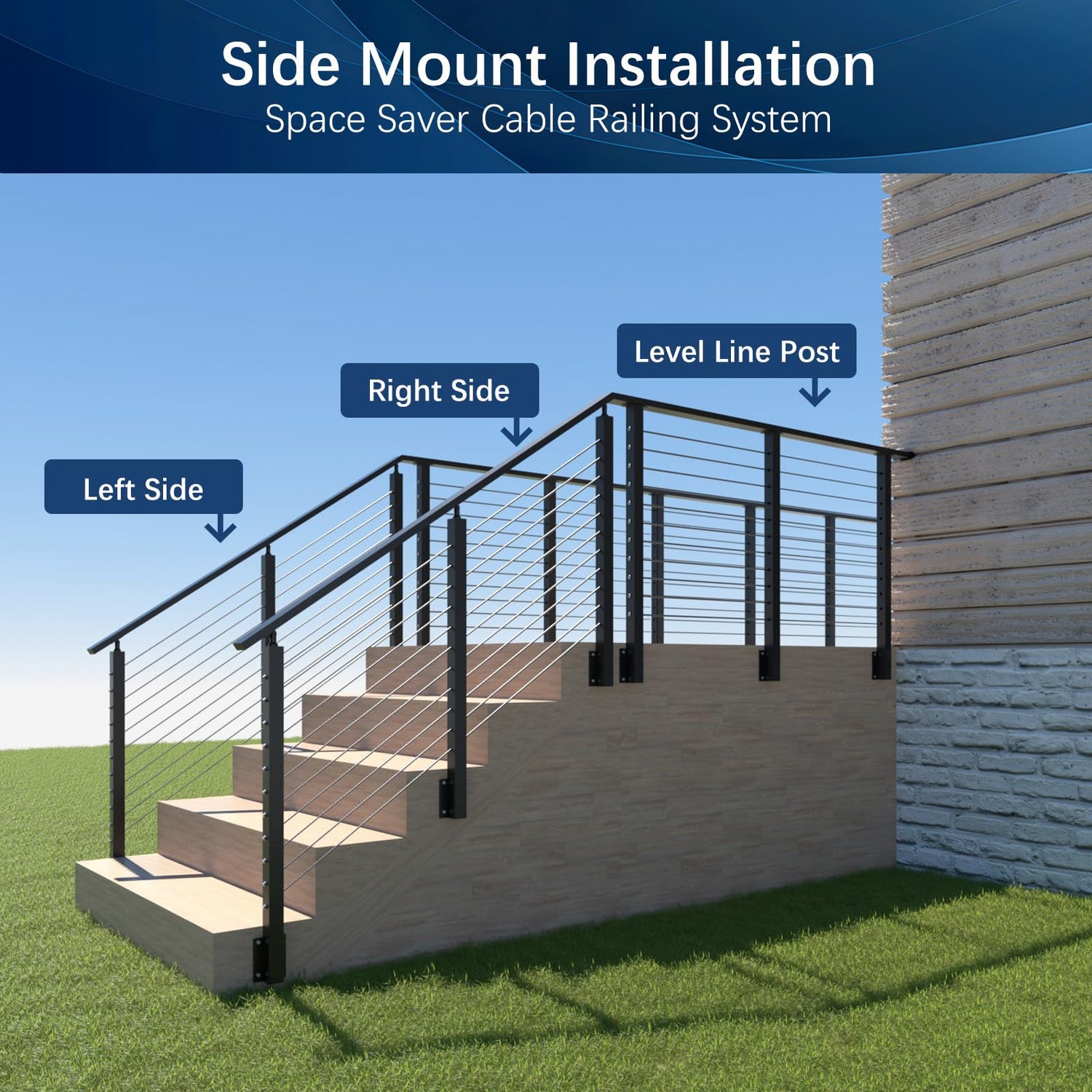 - Complete System Recommendations: To fully customize your side mount railing system, various cable railing accessories may be required to build an integrated framework. Visit our Gyykzz store to explore black handrails, wire ropes, and terminals, ensuring all essentials for your project are available. Opting for higher quantity SKUs is suggested to enhance cost efficiency.