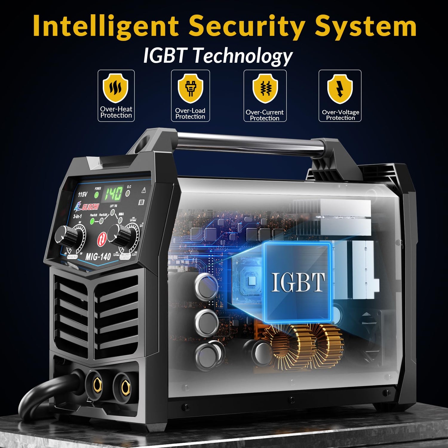GZ GUOZHI 140A MIG Welder, 3 in 1 Welder FLUX MIG/ARC/Lift TIG Multi-Process Mig Welder, 110V Welding Machine, Welder Machine 110v Flux Core Welder with Welding Gun