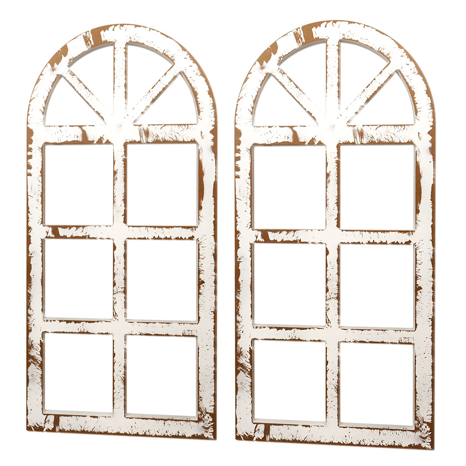 H&A Arch Window Frames Wall Decor 2 Pack - Rustic White Wood Window Pane Country Farmhouse Decorations (white)