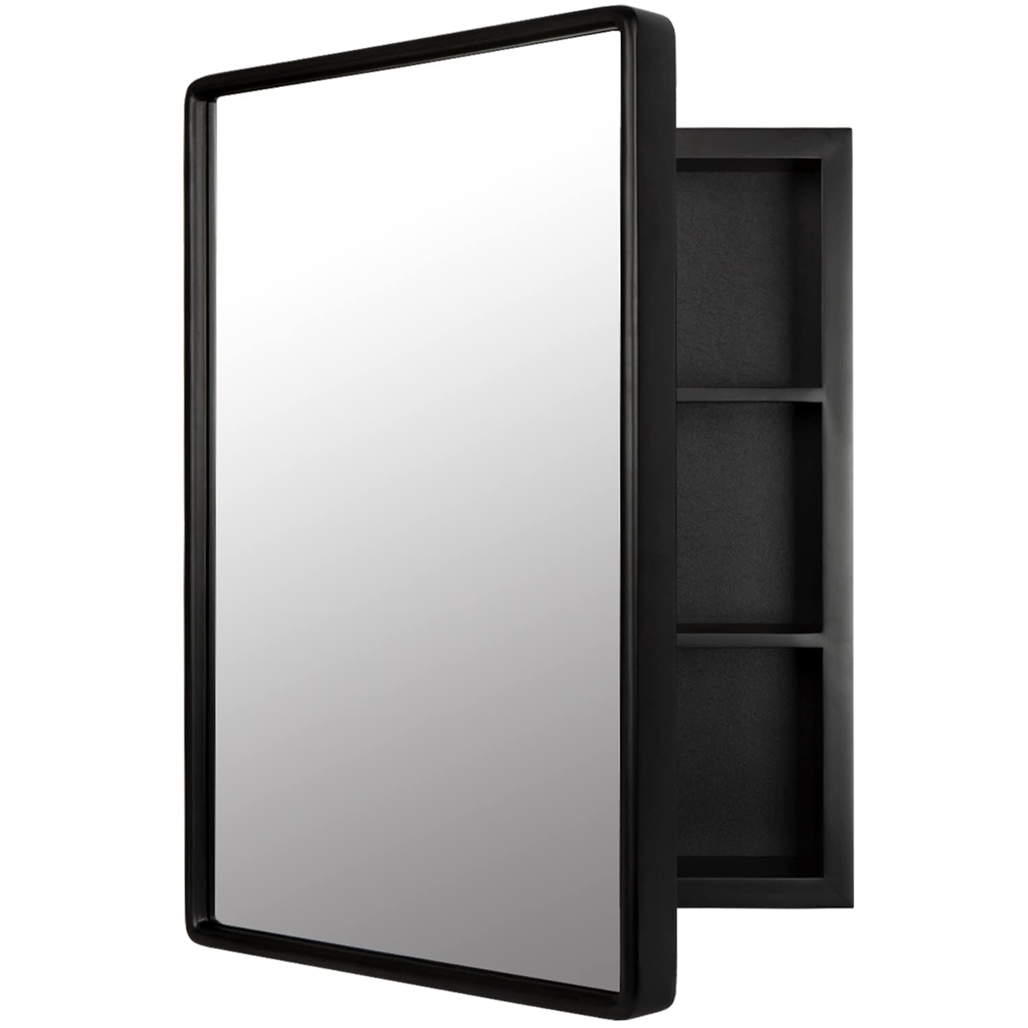 - The bathroom medicine cabinet provides you with tons of space for your bathroom essentials. Consists of 3 shelves for a spacious interior space to keep all items in order.