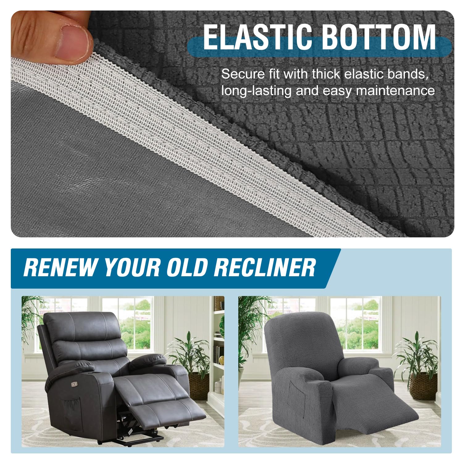 - Full Protect for Recliner Chair Cover : These slipcovers upgraded slipcover use high quality spandex, textured with vibrant small checks patternare ,super soft and comfortable, natural environmental. Protect your sofa from spills, stains and tearing. Great choice for electric power lift recliner chair cover elderly fitted standard recliner with side pocket