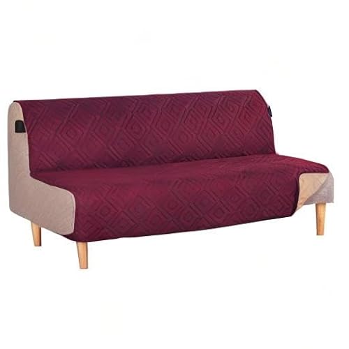 H.VERSAILTEX Futon Cover Reversible Sofa Slipcover Furniture Protector Water Resistant 2 Inch Wide Elastic Straps Sofa Bed Pets Kids Dog Cat Fit Sitting Width Up to 70"(Futon, Red/Tan)