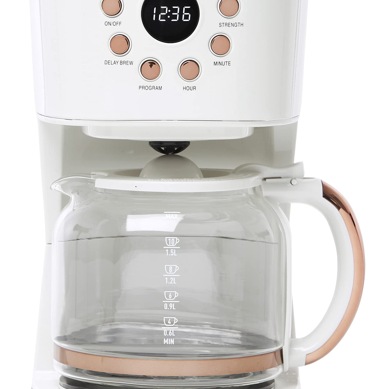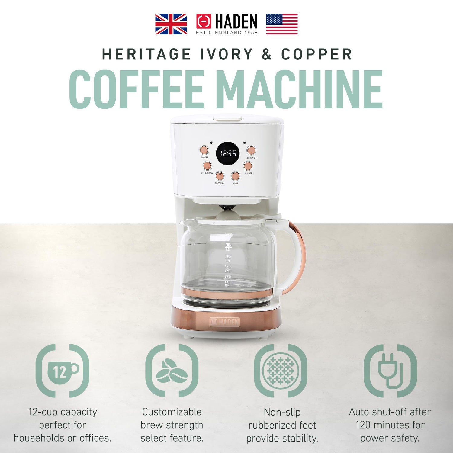 Haden Coffee Machine, 12 Cup Programmable Drip Coffee Maker with Auto Shut-Off Function and Reusable Washable Water Filter, Ivory & Copper