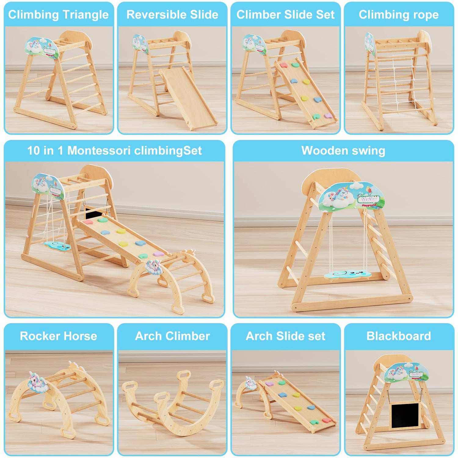 - [10 IN 1 CLIMBING SET] This Pikler Climbing Set offers 10 different climbing activities for toddlers to explore and enjoy, providing hours of fun and development.