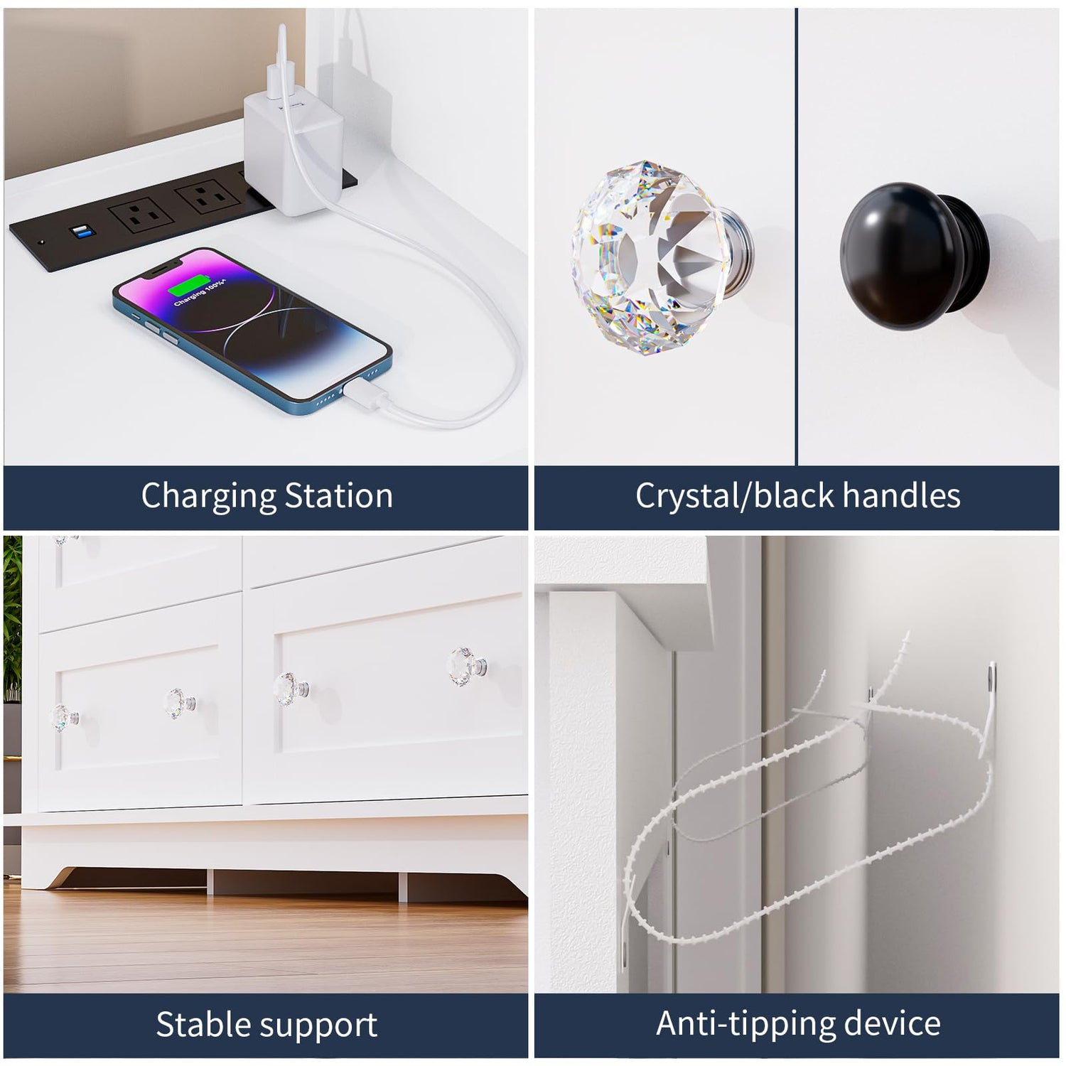 - Crystal Handles & Home Decor Enhancement: Choose between crystal handles and black handles to suit your preference. Crafted from high-quality medium-density fiberboard, our 8 Drawer wooden dresser features exquisite sealing craftsmanship, resulting in a super smooth and modern white finish. It serves as an elegant addition to your home decor.