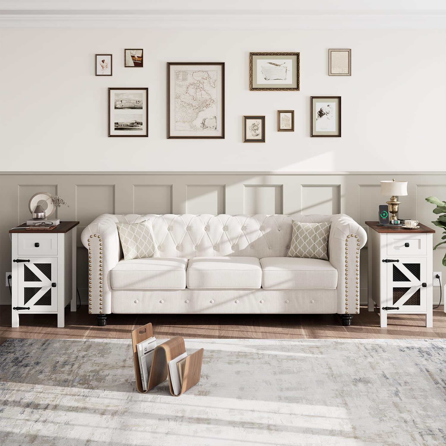 - 【Side table with Drawer】This white farmhouse narrow end table Keep essentials close with a compact design! The farmhouse nightstand is perfect for storing, and can easily be removed to free up space in the drawer for smaller items, letting you customize storage as needed