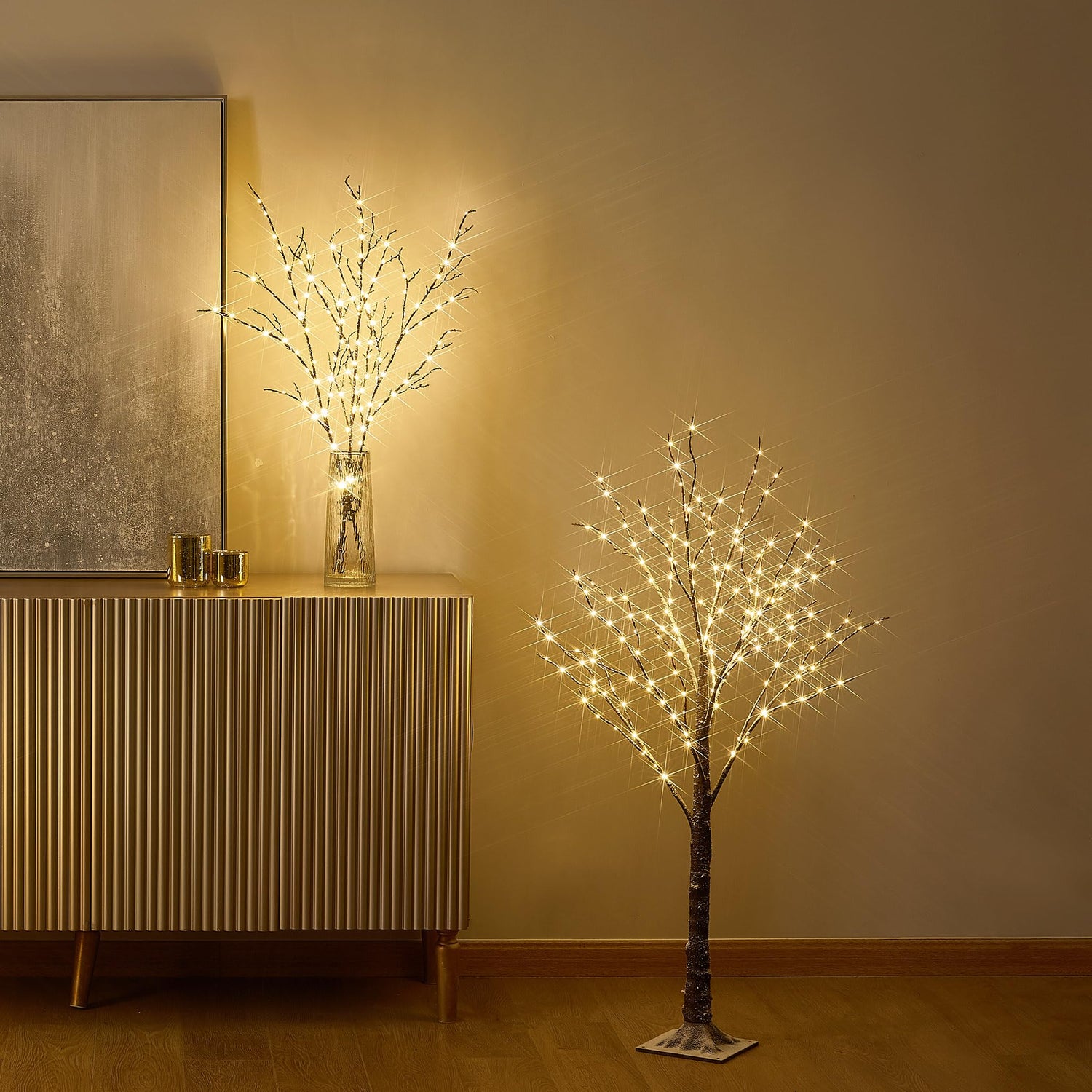 - 【Cozy Lights】: Totally 200 warm white micro LED bulbs dotted on the branches cast a subtle glow that adds warmth to your home bedroom, living room or any setting