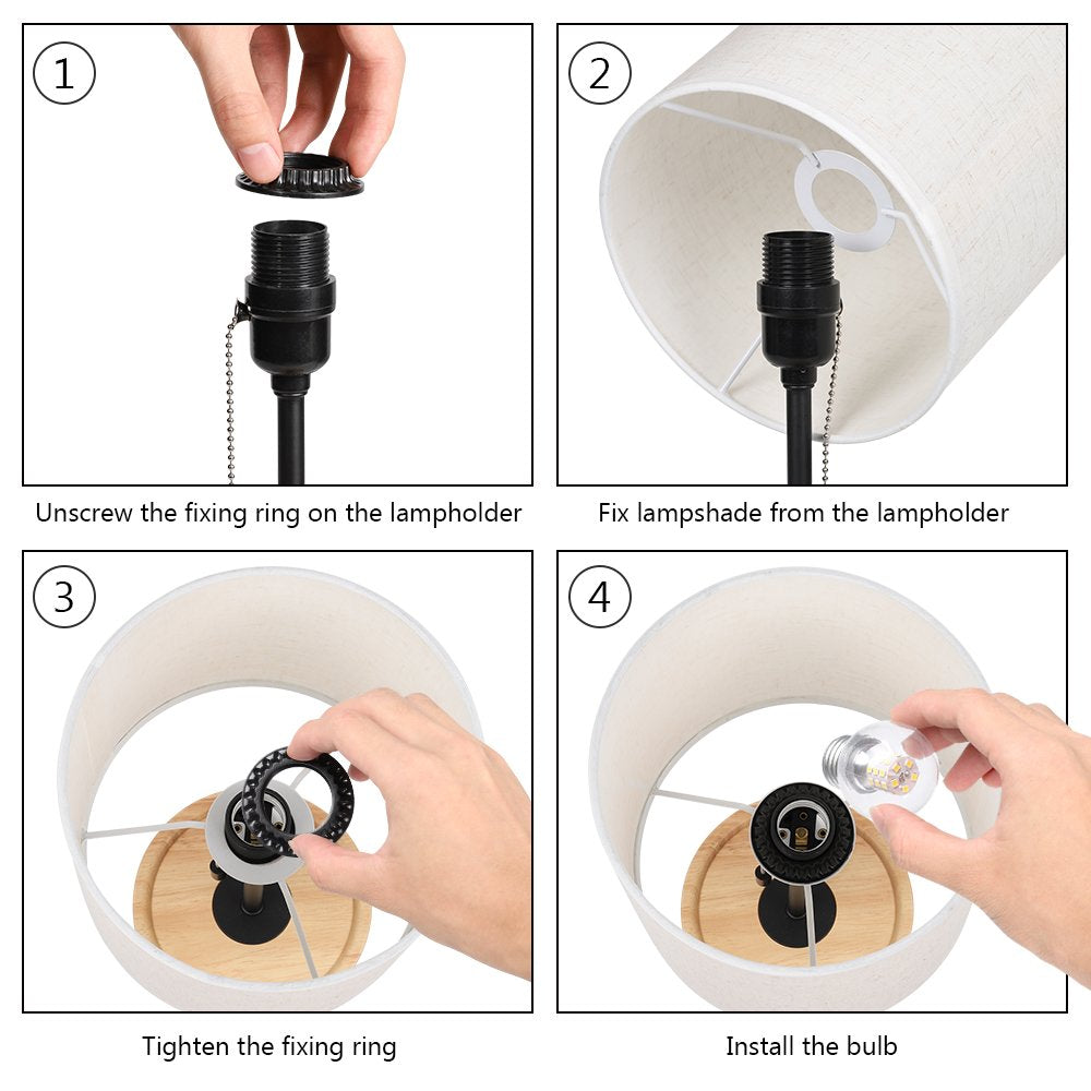 ➂ Please Screw on the ring again to fit the threads, stable the lamp shade.