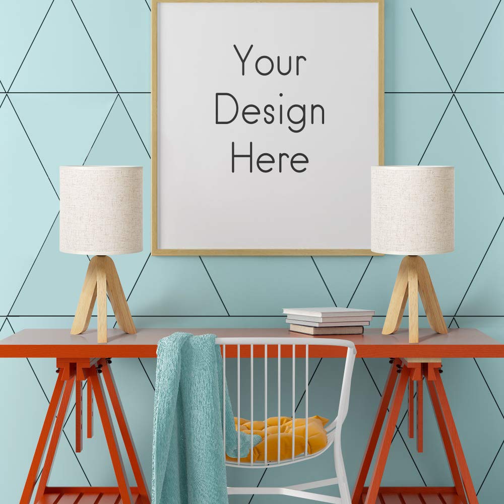 HAITRAL Small Table Lamps - Wooden Tripod Nightstand Lamps Set of 2 for Bedroom, Living Room, Office, Home with Fabric Linen Shade