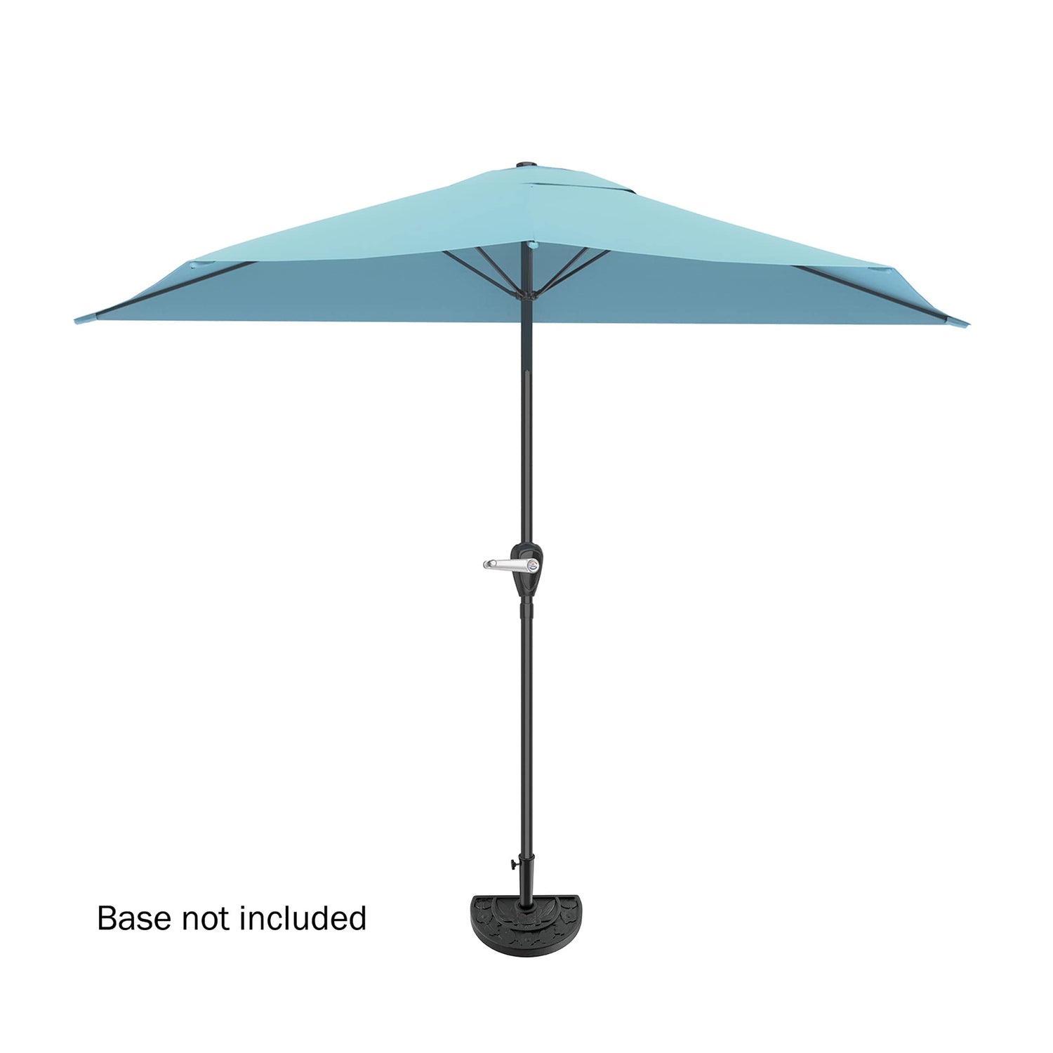 - HALF PATIO UMBRELLA - The easy-to-use crank handle opens and closes this outdoor umbrella in seconds, while the 9-foot half canopy provides ample shade. To create your outdoor oasis, simply place the steel pole in an umbrella base, stand, or table.