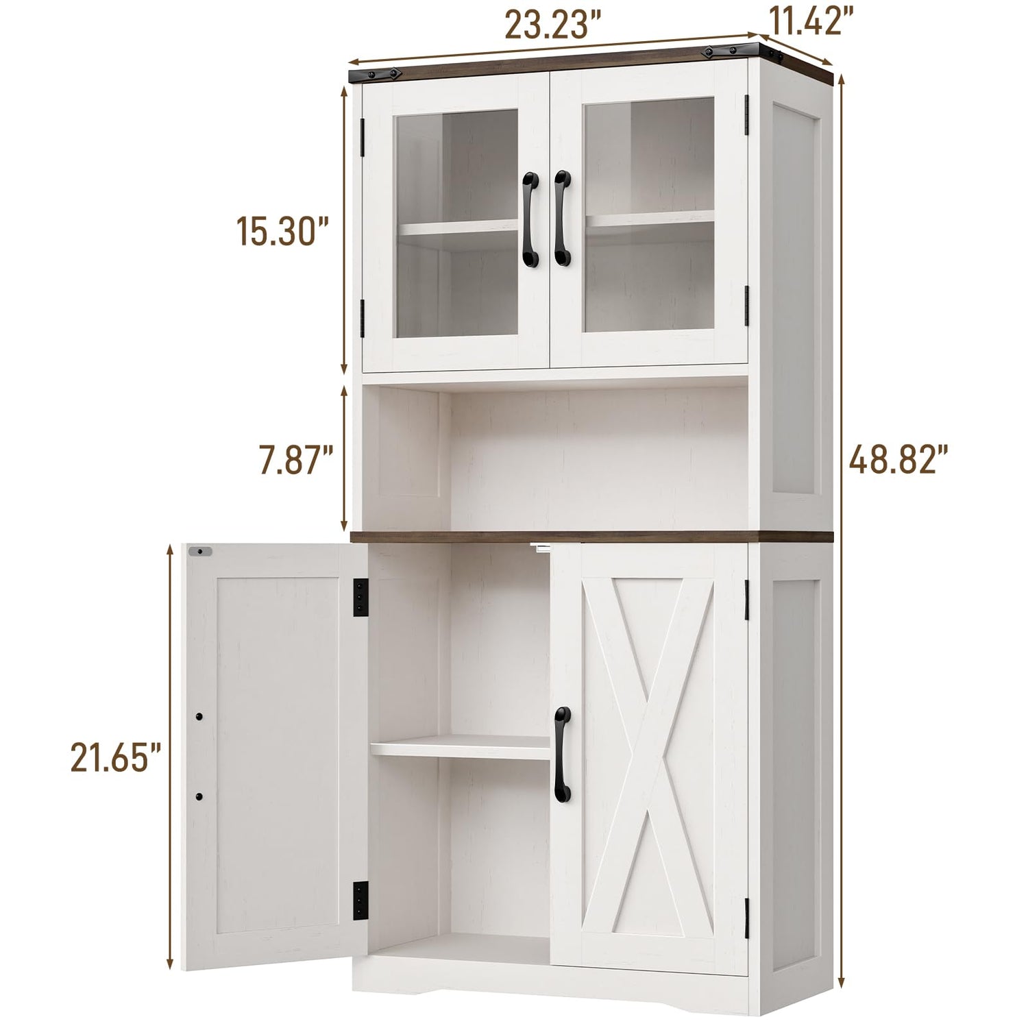 - 【Spacious Storage Capacity】 Farmhouse-style cabinet offers expansive storage capabilities. The upper cabinet features adjustable wooden shelves, allowing you to tailor the storage space to accommodate a variety of items, whether it's showcasing decorative pieces or organizing household essentials like books and dinnerware.