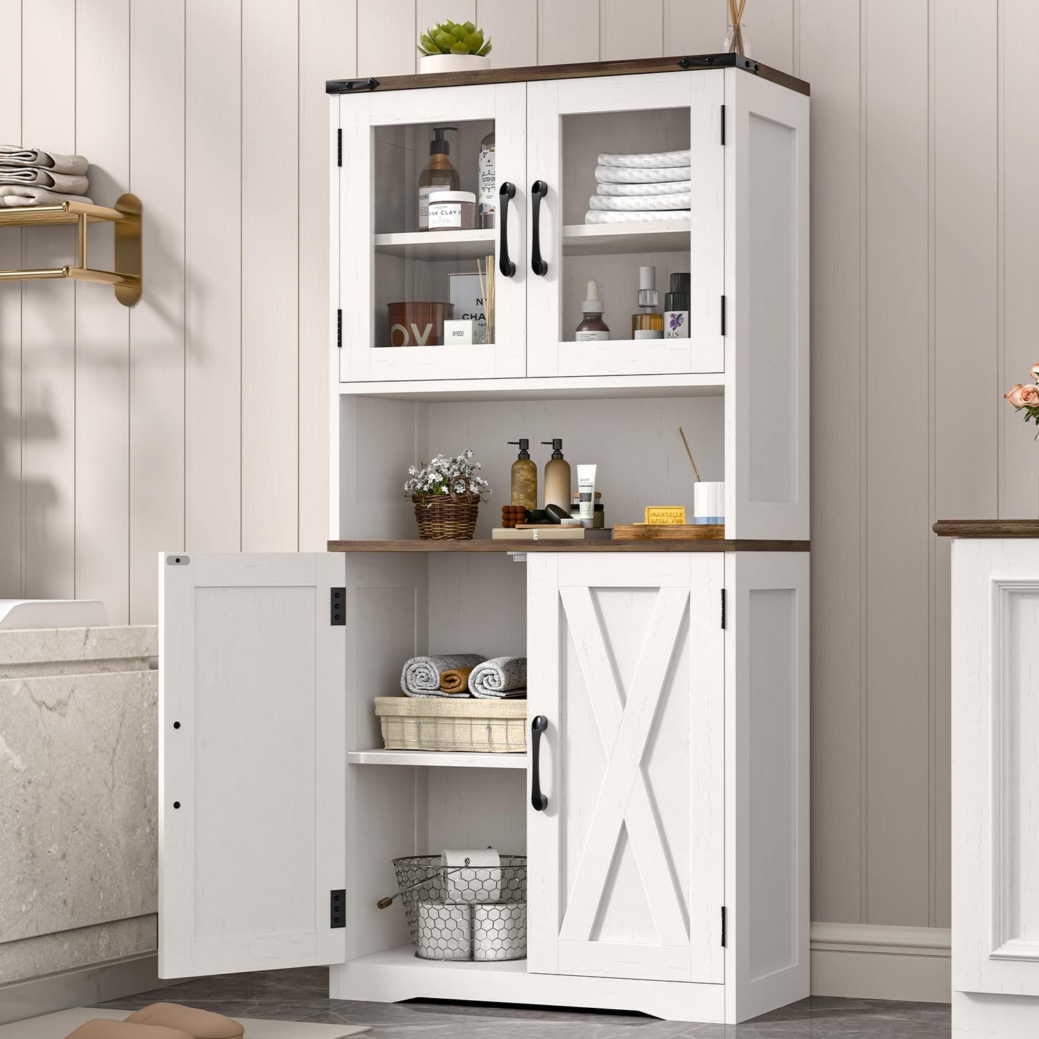 Halitaa Bathroom Storage Cabinet with Adjustable Shelves, Farmhouse Kitchen Pantry, Floor Farmhouse Storage Cabinets for Bathroom, Kitchen, Living Room, Rustic Style Cabinet, White and Brown