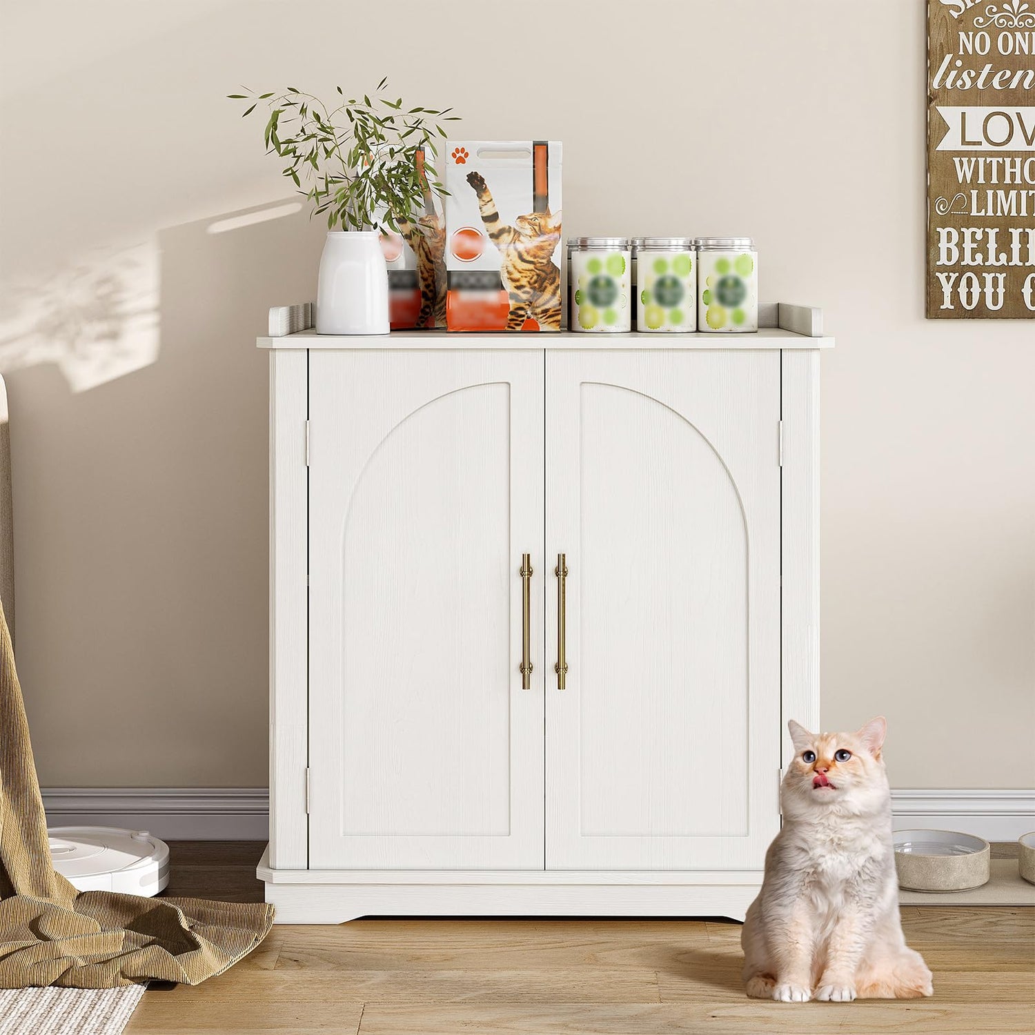 - Quiet and Secluded Space: This hidden litter box furniture provides your cat with a hidden, relaxing toilet space that is odor and litter free and reduces unpleasant messes. Never worry again, The litter box enclosure furniture gives your cat the hiding space they need to do their business in peace.Double cabinet doors make cat box furniture easier to scoop litter and store cat food