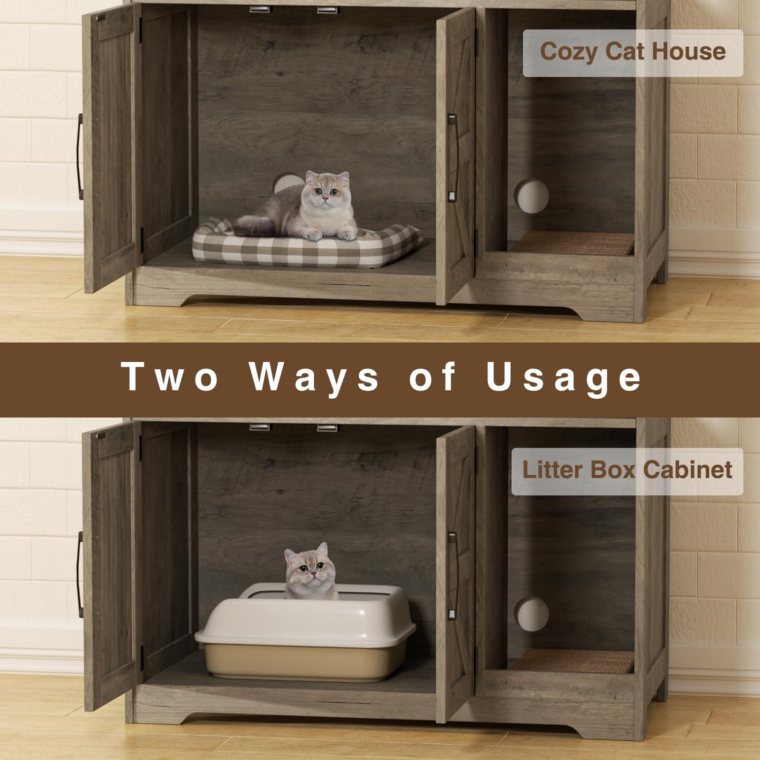 Halitaa Cat Litter Box Enclosure,Hidden Litter Box Furniture Cat Washroom with Cat Scratch Pad,Farmhouse Indoor Cat House End Table,Grey
